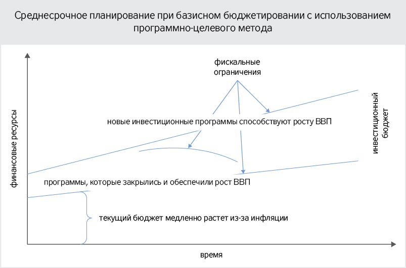 Среднесрочное бюджетное планирование является обязательным условием при базисном (англ. - incremental) бюджетировании, принимая базис как необходимое зло. Суть среднесрочного планирования при таких обстоятельствах заключается в инвестировании ресурсов, которые можно выделить из существующего базиса, на определенные учреждения, мероприятия или программы (с учетом того, как именно построено планирование). Но эти инвестиции, с одной стороны, должны обеспечивать развитие в соответствии с государственной стратегией, а с другой - не превратиться в базис, требующий постоянного вливания бюджетных средств. Такие расходы обязательно должны заканчиваться и давать результат, не обременяющий, а в лучшем случае прямо наполняющий бюджеты. При эффективном бюджетировании доля базиса в ВВП и в расходах бюджета должна сокращаться.