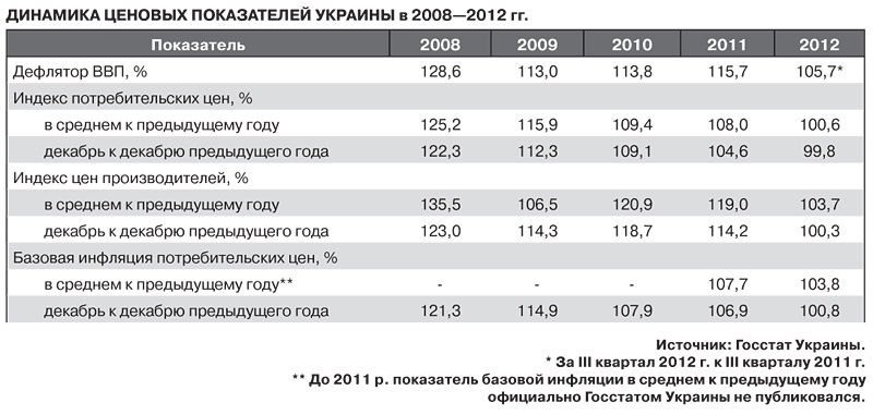 В частности, многие задаются вопросом, а не перегнули ли в Украине палку в вопросе снижения инфляции. Ведь в 2012 г. потребительские цены не просто не выросли, а снизились на 0,2%. Понятно, что для обывателя чем ниже инфляция, тем лучше. Между тем экономическая теория утверждает, что дефляция (а в случае стран с развивающейся экономикой - чересчур низкая инфляция) несет такие же издержки для экономического развития, как и слишком высокая инфляция. А потому, по мнению многих экспертов, оборотной стороной достигнутого в 2012 г. инфляционного результата является снижение темпов роста экономики. С пониманием относясь к подобным предостережениям, все же выскажем свое мнение: нет, палку не перегнули. И вот почему.