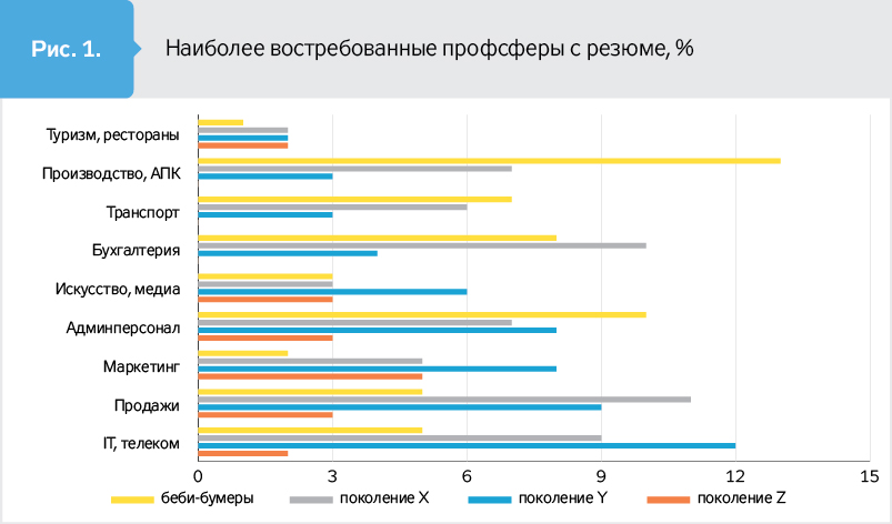 Работодатели, которые искали или ищут сотрудников для административной работы (водителей, администраторов хозяйственных отделов, уборщиц и т.п.), на производство или в агрокомпанию (инженеров, руководителей цехов, технологов, конструкторов, специалистов по контролю качества и т.п.), знают, что часто такими вакансиями интересуются беби-бумеры. Поколение X привлекает работа в ритейле и бухгалтерии. Нужен IT-шник или маркетолог - ждите кучу резюме от миллениалов. Говорить что-то о преимуществах "зетов" еще довольно рано. Но уже сейчас заметно их стремление работать в искусстве, медиа и IT-секторе.