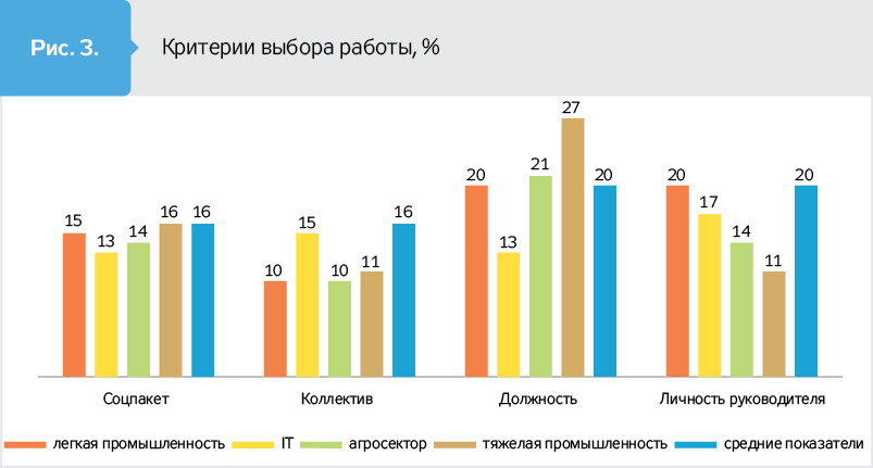 Наличие социального пакета, как и официального оформления, важнее для соискателей, заинтересованных в работе в промышленности. Эти критерии являются определенным гарантом стабильности, которой отдают преимущество опытные кандидаты поколений беби-бумеров и X (см. рис. 3).