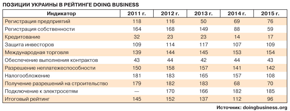 Согласно результатам нового доклада группы Всемирного банка Украина за прошлый год, несмотря на экономический кризис и политические потрясения, улучшила условия ведения бизнеса и переместилась в рейтинге Doing Business-2015 с 112-го на 96-е место. Событие удивительное хотя бы потому, что украинские бизнесмены никаких улучшений не ощутили, напротив, положение многих из них за это время ухудшилось. Не увеличилось и число инвесторов, желающих работать в Украине. Так стоит ли радоваться улучшениям, которые иллюстрируют не столько реальные изменения, сколько уровень популизма властей?