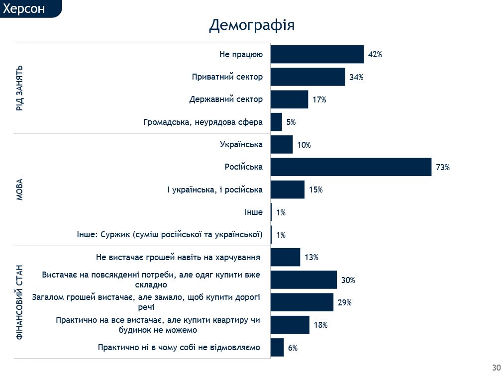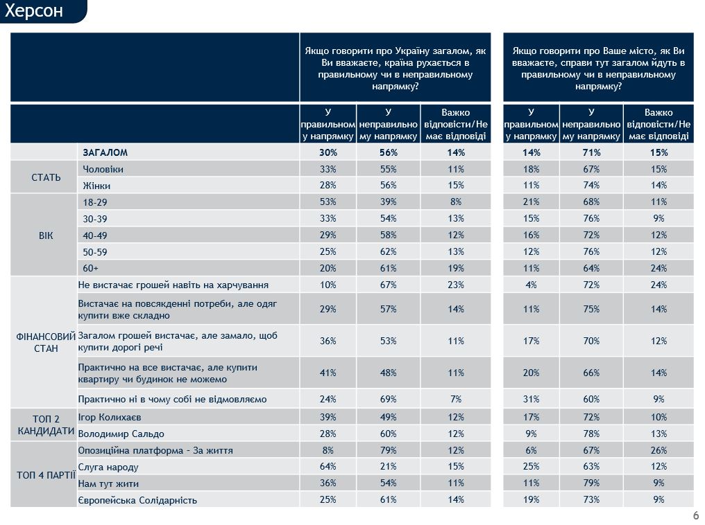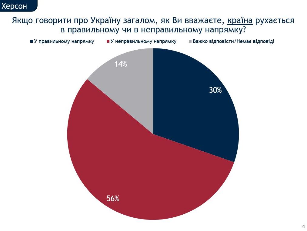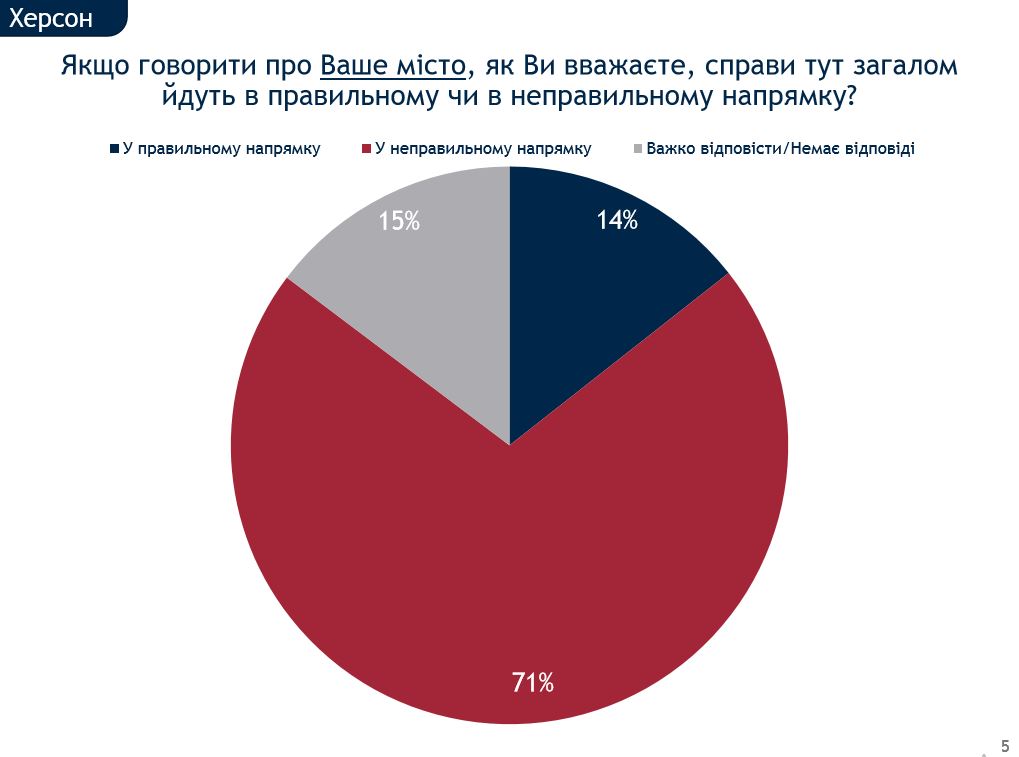 Херсон — грустный город-рекордсмен. По данным опроса IRI, проведенного компанией Info Sapiens, 71% горожан убеждены, что их город развивается в неправильном направлении, и только 14% считают, что все идет так, как надо.