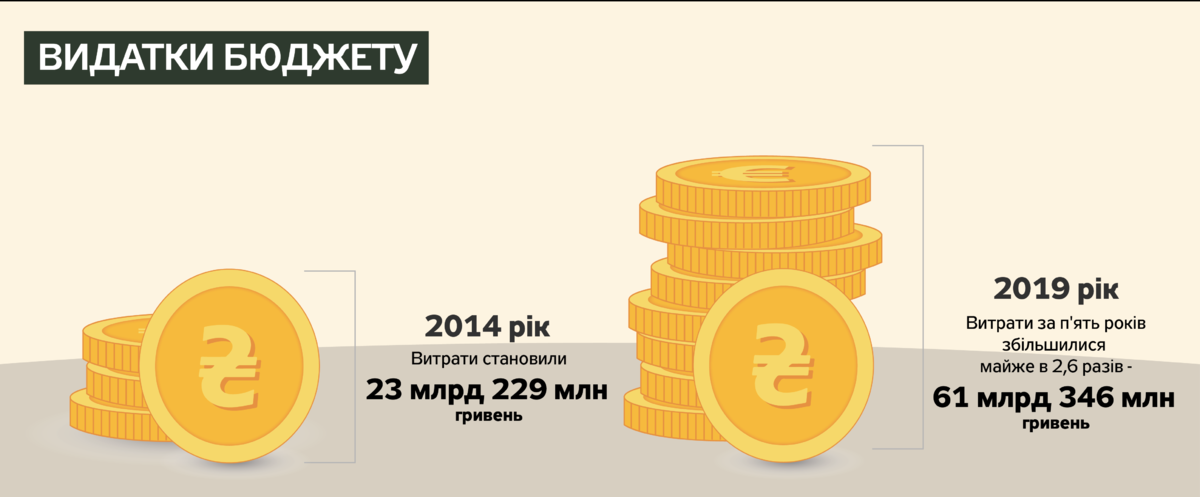 Киев — крупнейший город как по численности населения, так и по количеству зарегистрированных предприятий, поскольку значительная часть компаний, имея производства где угодно, офисы размещает в столице. Соответственно объемы «зарплатного налога» (НДФЛ) и налога на прибыль предприятий формируют свыше 70% столичного бюджета. По сравнению с другими областными центрами бюджет Киева огромен, в 2019 году его доходная часть составляла 62,2 млрд грн, из которых на государственные субвенции на образование, медицину и прочее приходилось только 13,6 млрд, или 22%.