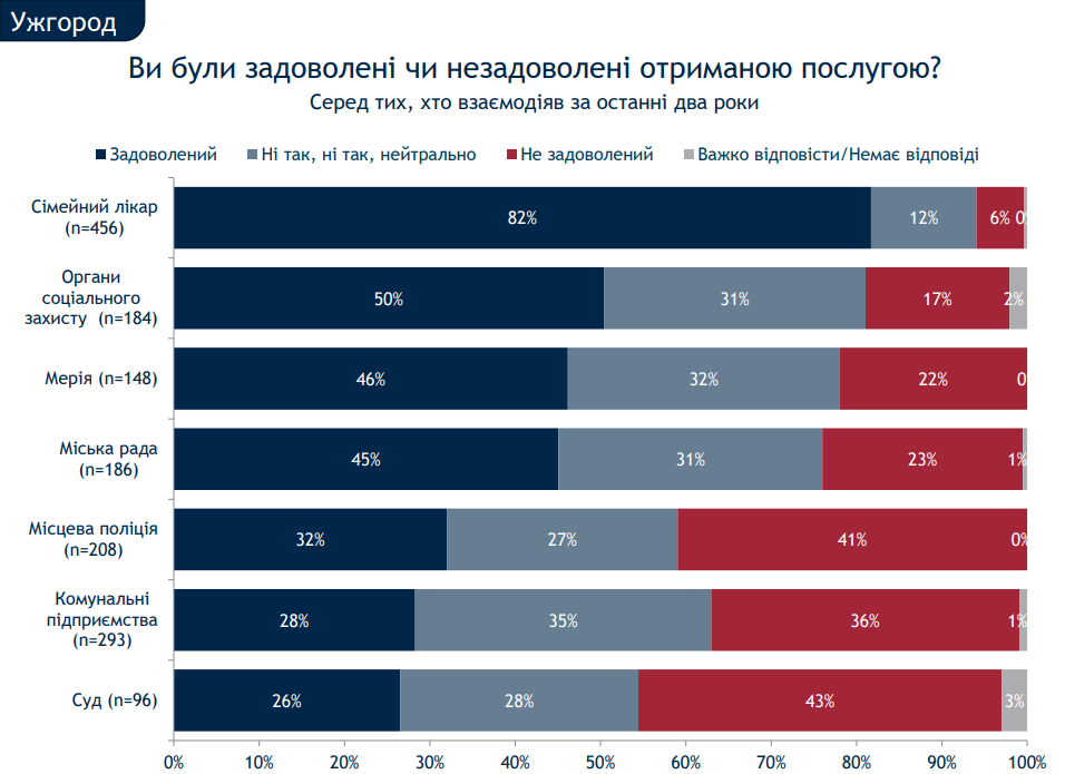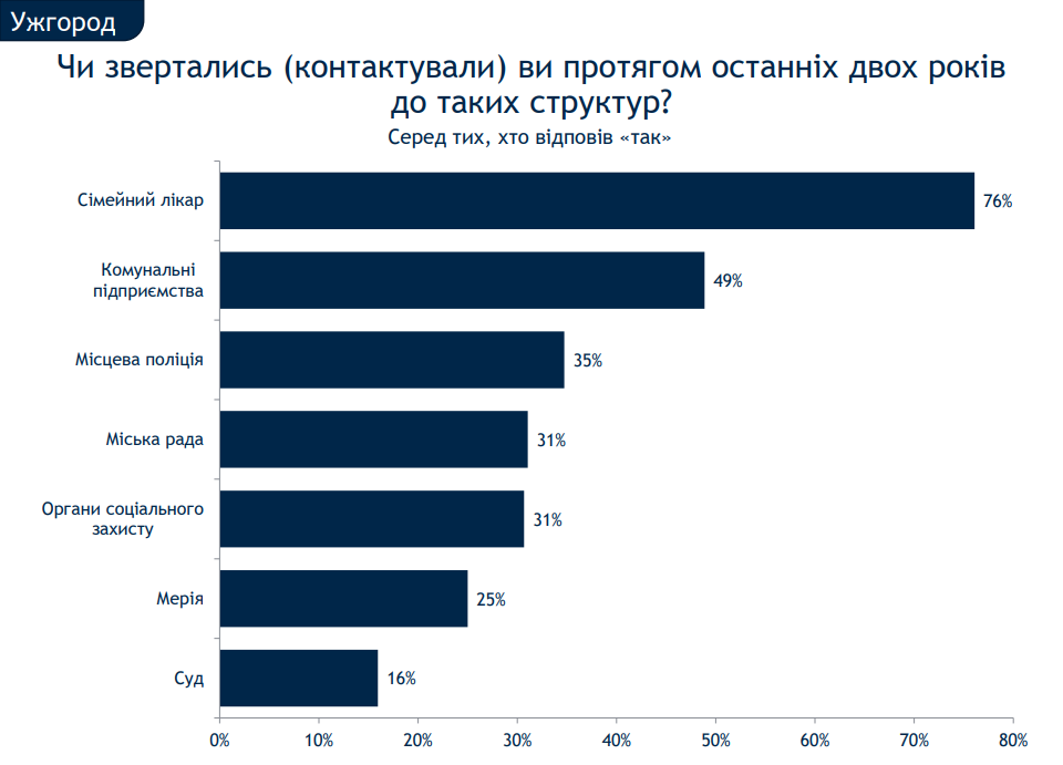 В рейтинге областных центров муниципального опроса группы «Рейтинг», где оценивались уровень и качество предоставляемых в городе услуг, Ужгород — четвертый с конца с 2,7 балла из 5 максимальных.