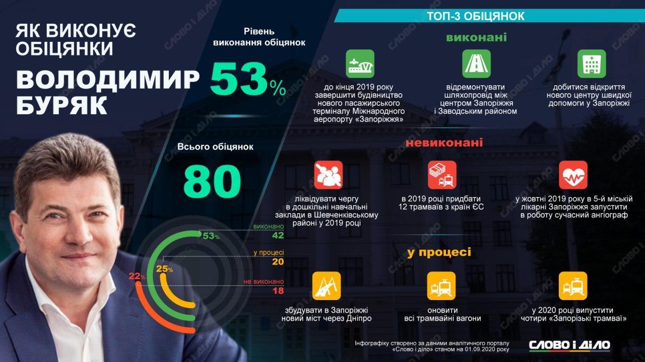 При этом интересно, что мэр Запорожья Владимир Буряк успел выполнить большинство своих обещаний, а их было немало — 80.