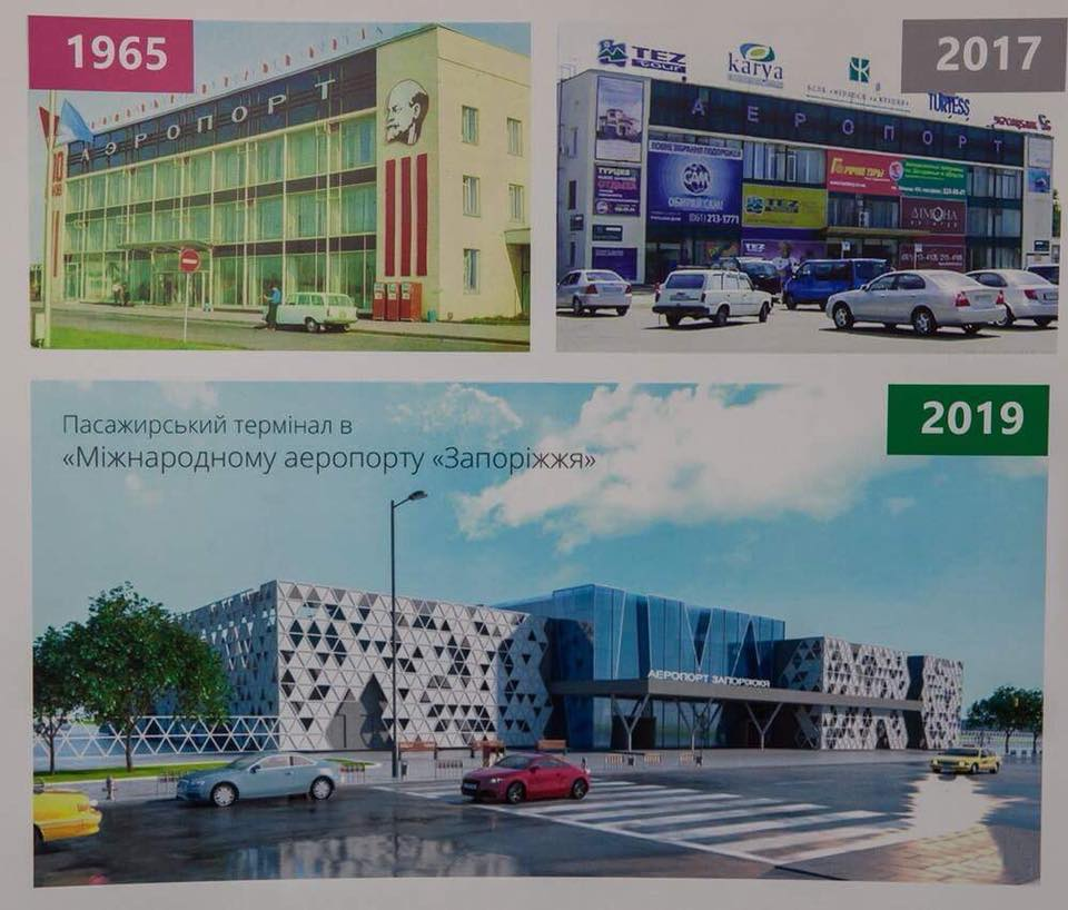 Самый резонансный пример — строительство нового терминала аэропорта. Первую сваю строители вбили в декабре 2017 года. 28 декабря 2019-го объект принял городской голова Запорожья Владимир Буряк, инициировавший строительство нового пассажирского терминала. Площадь терминала — более 12300 квадратных метров. Пропускная способность — до 400 пассажиров в час. Из них 150 — на внутренних рейсах, 250 — на международных. С перспективой увеличения пропускной способности терминала до 500 пассажиров в час.