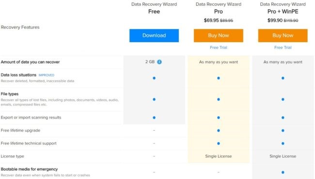 Программа распространяется несколькими способами. Первый вариант бесплатный (Free), второй - профессиональный (Pro), а также Pro + WinPE, который позволяет восстанавливать данные, даже если компьютерная система не загружается и выдает ошибки. Для ознакомления с основными функциями программы, отлично, пойдет бесплатная версия. Различие между изданиями Free и Pro лишь в объеме данных которые можно восстановить. В данный момент, версию Pro можно приобрести за 69,95$. Версию Pro для Mac, можно приобрести за $89,95.