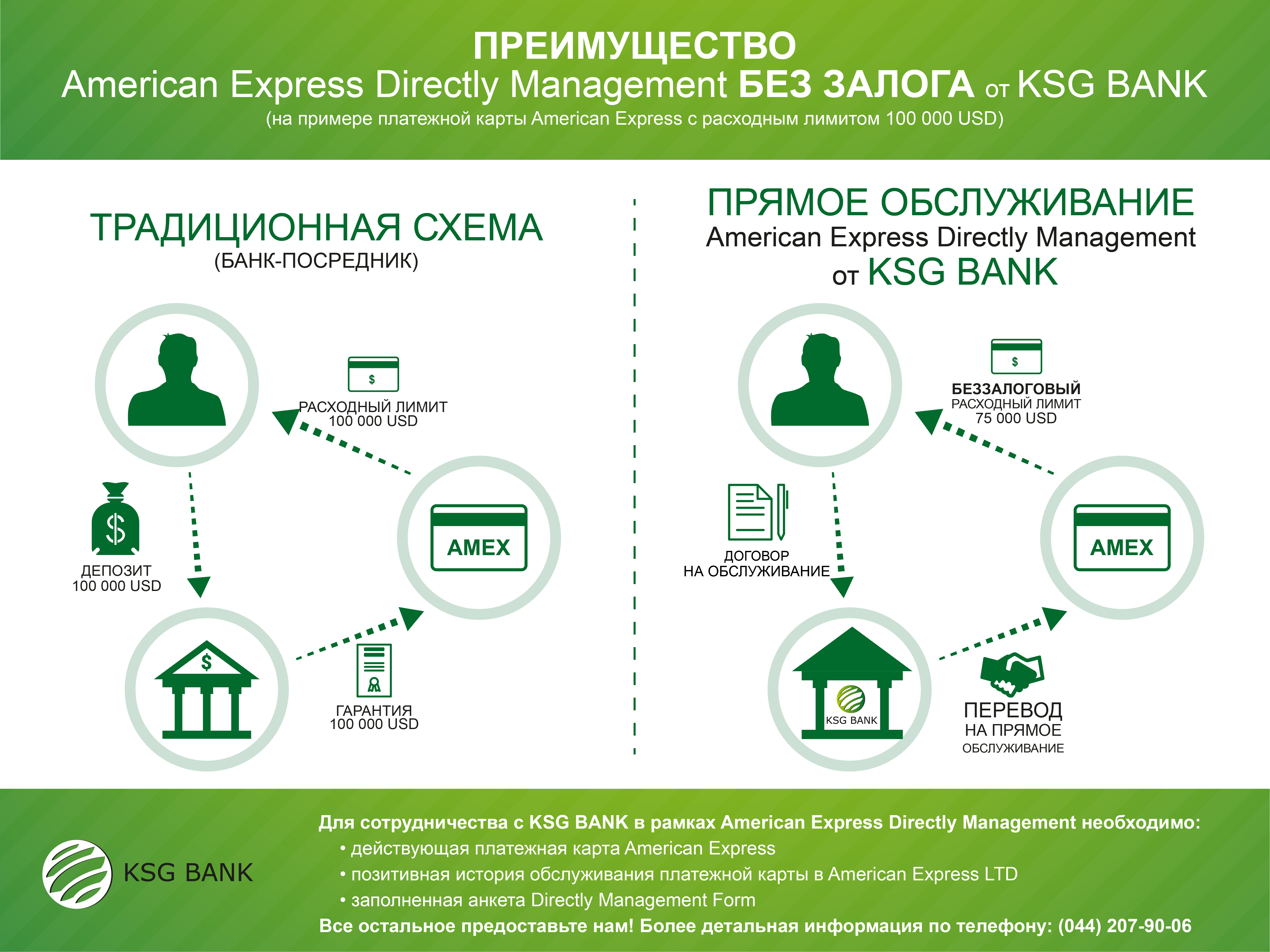 Воспользоваться услугой "American Express Directly Management" от KSG BANK довольно просто. Клиенту необходимо: