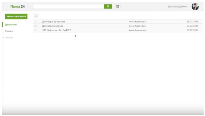 "Как сейчас компании обычно подписывают друг с другом договоры, акты и прочие документы? Распечатывают их в двойном экземпляре и обмениваются ими через курьера, – говорит Дмитрий Дубилет, ИТ-директор ПриватБанка. – С Папка24 Вы просто загружаете документ, в пару кликов накладываете на него электронно-цифровую подпись (ЭЦП), отправляете его контрагенту, который также его подписывает. И всё!".