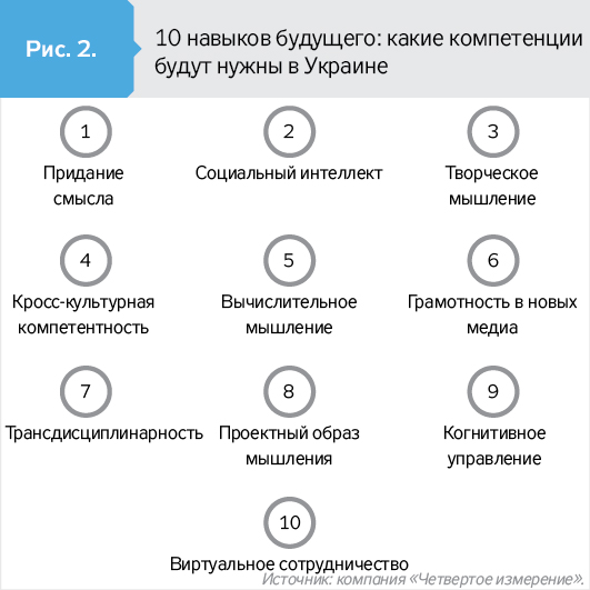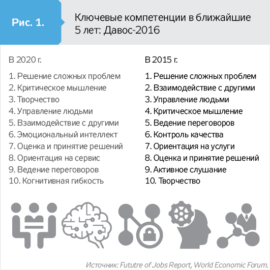 - В профессиональной среде это называется компетенциями. Есть целый список, на который смотрит мир в целом. На ближайшие пять лет первая позиция в нем сохранится за умением решать сложные проблемы. Далее идет все, что связано с умением устанавливать взаимоотношения, с управлением людьми, эмоциональным интеллектом и критическим мышлением. Это базовые вещи, которые сильно переформатируются. Важно контекстное мышление, то есть в большой картинке - умение, обработав большой массив данных, вычленить из потока информации основное. Важны умения видеть наперед, быть гибким, правильно адаптироваться, прогнозировать непрогнозируемое, просчитывая ситуацию, даже когда происходят очень серьезные изменения, то есть способ мышления не в черно-белых тонах "или, или", а "и, и". В общем востребовано все, что поможет людям справляться с изменениями и вызовами, не воспринимать их как абсурд, отбрасывать и впадать в депрессию, а учиться переходить в зону действий, несмотря на все негативы.