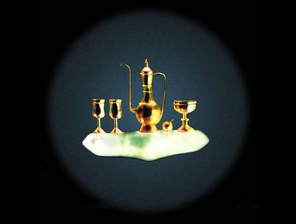 Но это были еще только цветочки. Со временем появились сверхсложные художественные композиции. Рассказывать о них - напрасное дело, их следует хотя бы раз в жизни увидеть и постичь душой. Но постичь не так-то просто. Попробуйте только представить такую фантастическую работу, как золотой фрегат "Памяти Александра Грина". Его длина - 3,5 мм. Модель состоит из 337 деталей. В этой работе выдержан объемный монтаж, уровень которого недостижим для современных технологий. А представьте себе изготовленного из золота комара в натуральную величину. На носу комарика сидит девочка под зонтиком. На одной из ножек едва видно, как свисает туфелька... Так и хочется воскликнуть: "Невероятно! Фантастически! Брависсимо, Маэстро!"