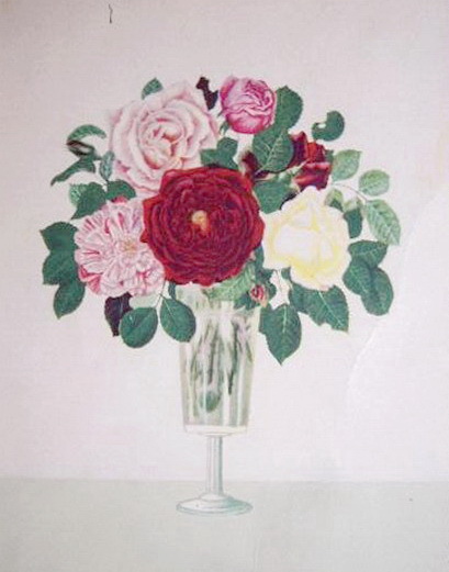 В один из летних дней 1915 года, находясь на отдыхе в родительском имении на хуторе Нарбутовка Глуховского уезда, художник начал новый шедевр. Это должна была быть акварель "Розы (в бокале)", которую автор собирался подарить первой жене Вере Павловне Кирьяковой, которая в марте 1914 года родила мужу первенца - дочь Марину.