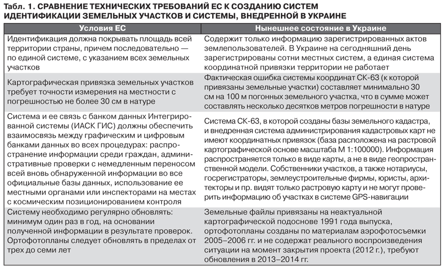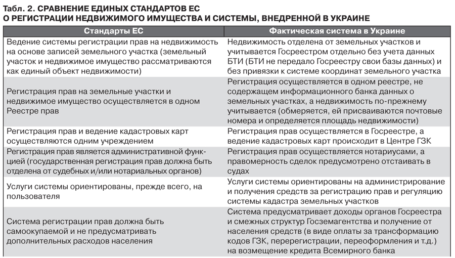 Эти две системы в Украине должны работать параллельно, что создает угрозы для контролируемости рынка земли, а также трудности при регистрации сделок для населения. При этом предусматривается, что государственная регистрация прав должна проводиться нотариусом, что абсолютно не отвечает требованиям Евросоюза к процедуре регистрации земельных участков.