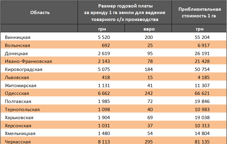 На сегодняшний день в Украине в открытом доступе есть данные по соответствующим областям и видам земель с их нормативной оценкой.