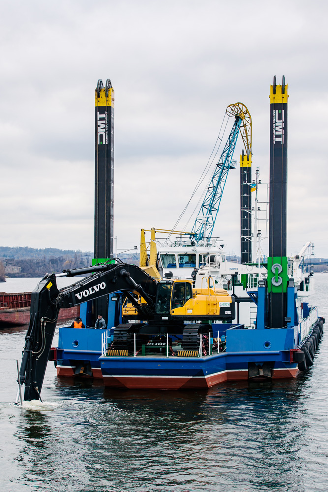 Высокотехнологичный "Николаевец" может работать на глубинах до 15 м гидромолотом, фрезой и ковшом. Его мощности достаточно для углубления украинских рек, акватории портов и терминалов до необходимых глубин. А оборудование позволяет работать со скальными почвами Днепра в режиме онлайн-наблюдения за подводной работой как в дневное, так и в ночное время. Это и продемонстрировали журналистам при участии и поддержке ГП "Укрводпуть" и разработчика проекта по дноуглублению на лимитирующих перекатах в Днепровском и в Каменском водохранилищах - "Укрречтранспроекта". Стоимость продемонстрированного дноуглубительного комплекса превышает 10 млн долл.