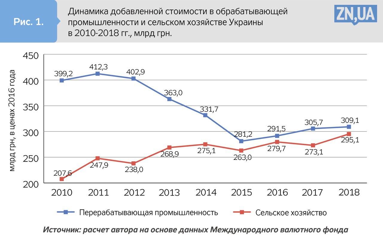 Структура экономики формируется в направлении менее производительных и технологически более простых производств в сфере сельского хозяйства, в то время как отрасли перерабатывающей промышленности сокращают хозяйственную деятельность.