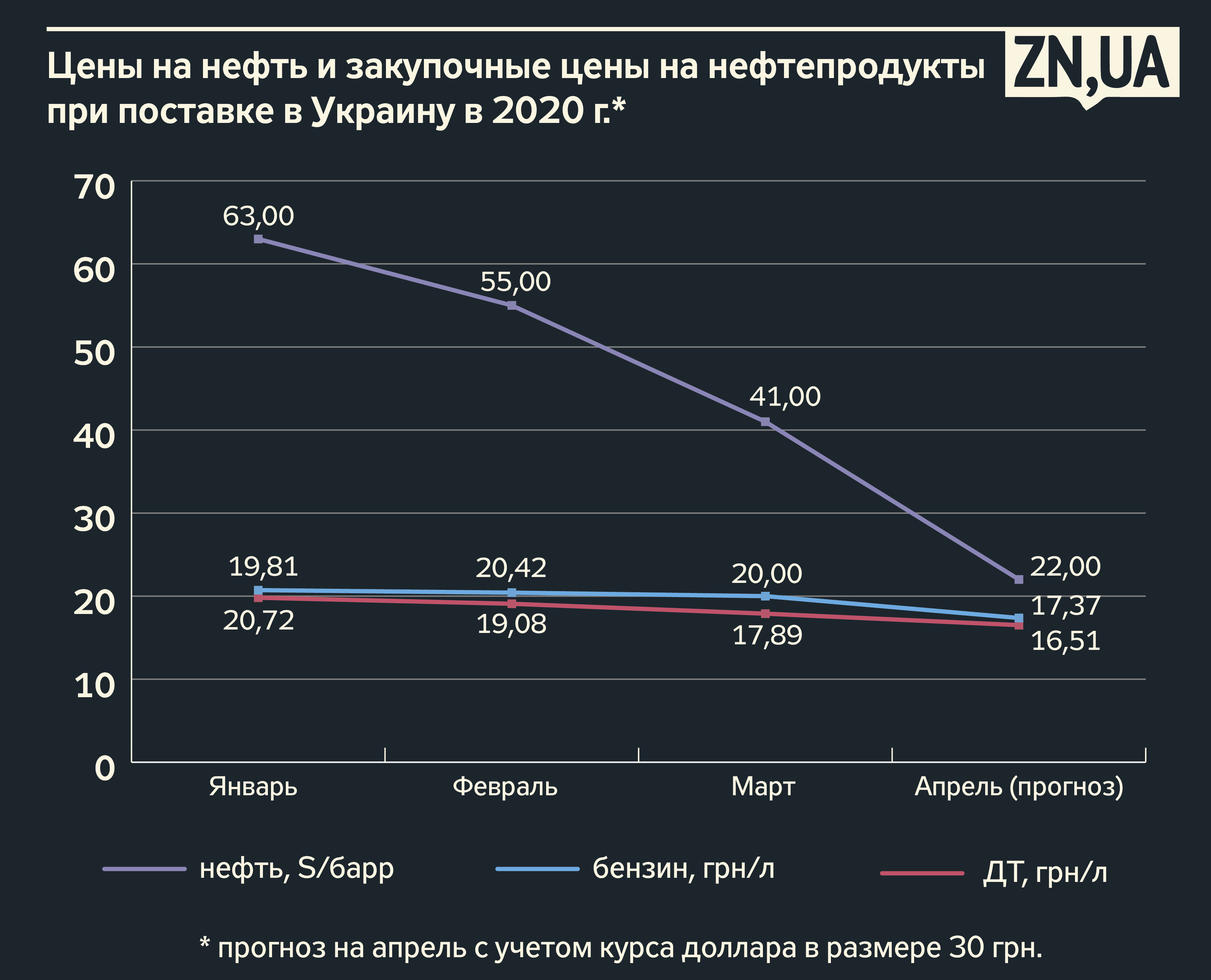 Но даже в таких условиях "нефтяная" чаша весов пока остается сильнее. Если бы провала курса не произошло, на начало апреля можно было бы ожидать снижения закупочных цен на 5–6 грн/л для бензина и ДТ, соответственно. Но на апрель многие ждут доллар по 30 грн, что уменьшает потенциал снижения до 1,5–2 грн/л по бензинам и ДТ. Если курс остановится на текущей отметке 28 грн, потенциал снижения будет 3–4 грн/л. Это составляет 12–15% к текущему уровню розничных цен.
