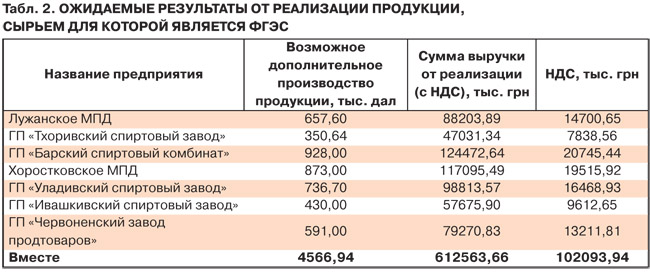Таким образом, с одной стороны останавливаются предприятия, а с другой - ставится крест на перспективах отрасли. Не секрет, что мощности спиртовых предприятий в три раза превышают емкость внутреннего рынка. Поэтому часть из них перепрофилировались на производство технических жидкостей. Самое перспективное направление - это производство спиртовой присадки КМПА, повышающей октановое число бензина. И ФГЭС в данном случае является сырьем, а теперь уже подакцизным сырьем. Вот вам и потери от запланированной, но непроизведенной продукции (см. табл. 2).