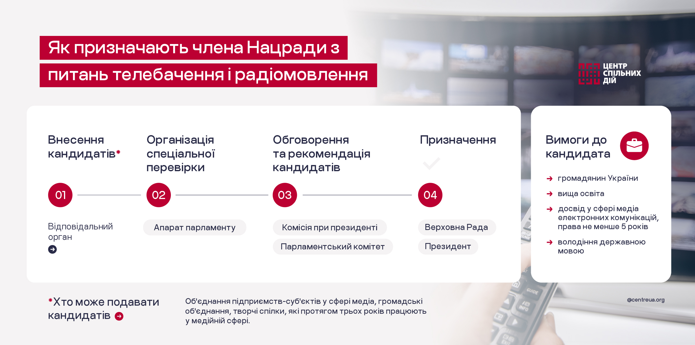 Ключевым элементом всей реформы станет работа Национального совета по вопросам телевидения и радиовещания — постоянно действующего конституционного национального регулятора в сфере телерадиовещания. С новыми полномочиями у него есть необходимые возможности для эффективного наказания нарушителей и противодействия вражеской пропаганде.