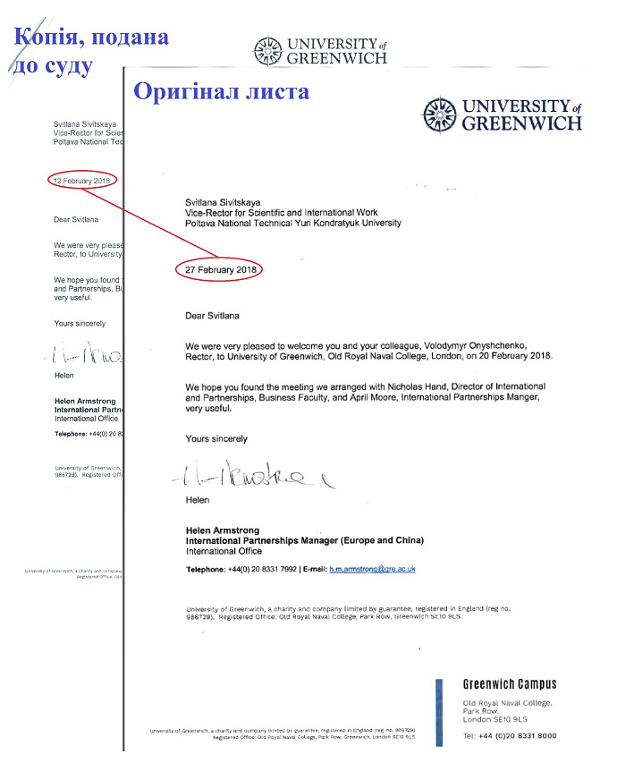 Заинтересовавшись историей приглашения руководителей полтавского вуза в Гринвичский университет, я обратился в последний с запросом (согласно Акту о свободе информации, действующему в Соединенном Королевстве с