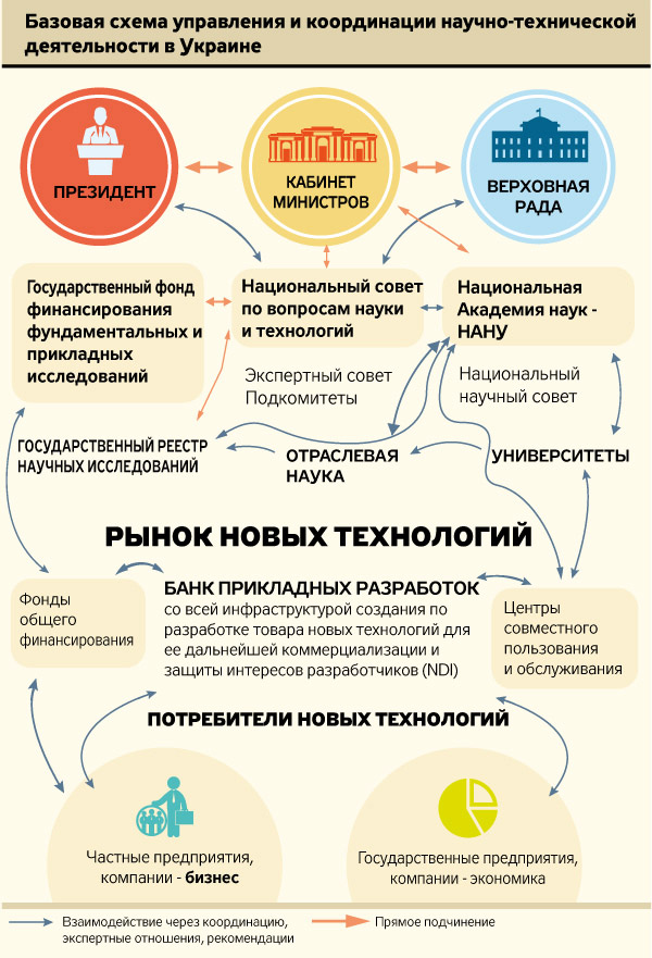Национального фонда исследований (для аккумуляции средств на науку), изменения системы финансирования науки (соотношение между базовым и грантовым финансированием должно заметно измениться в пользу последнего), новых подходов в вопросах мотивации научных работников и их карьерного роста; также все сошлись на том, что главной научной организацией страны должна и впредь оставаться Национальная академия наук. Было много других интересных предложений, касающихся улучшения научной деятельности. В то же время архиважная проблема - как создать эффективную схему "наука - технологии - экономика/бизнес" - осталась практически вне обсуждения. Из семиминутной презентации "Концепции комплексного реформирования научно-технической сферы в Украине", предложенной Фондом национального развития и инноваций (NDI Fоundation,) сложно выкристаллизовать все то, что важно для понимания заложенных в концепции идей. Поэтому я обратилась с вопросами к одному из авторов концепции, вице-президенту Центра новых технологий, академику УАН Давиду Статникову.