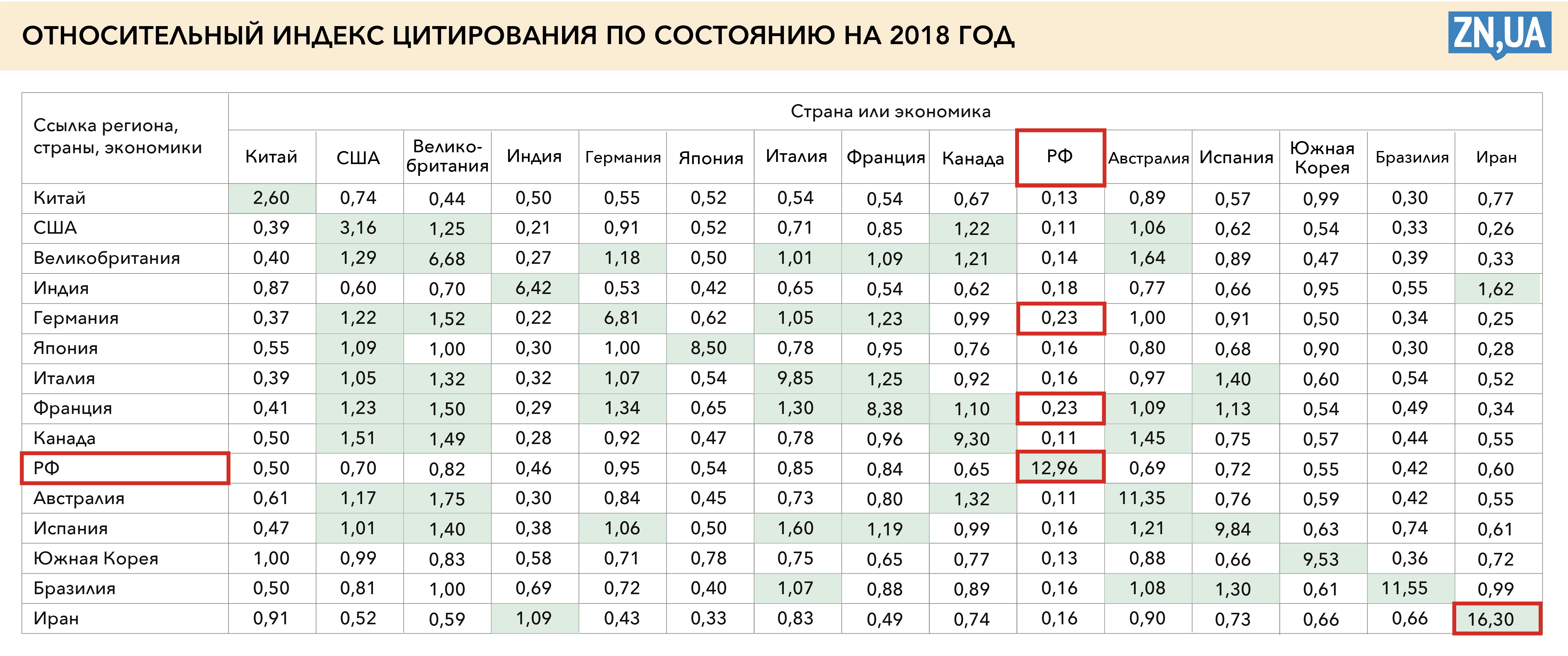 Откровенно говоря, российские ученые, наверное, интуитивно сформировали такую динамику к самоотсечению своего научного импакта еще до войны, ведь именно Россия еще с одной страной мира вышла в лидеры по самоцитированию своих ученых, то есть россиян россиянами: их показатель составляет 12,96, тогда как японцы цитируют их на уровне 0,16; американцы — 0,11, британцы — 0,14. Пару ученым из России составляет уже давно подсанкционная страна — Иран, мировой лидер по роли самоцитирования в формировании научного импакта страны (показатель 16,3). Хороша пара, что тут скажешь.