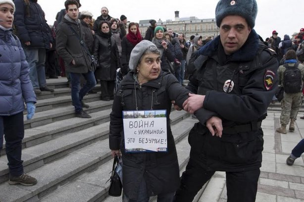 Поліцейський у Новгороді, бідний служивий, трохи людяніший, ніж інші, не б'є, не хапає, не тягне дівчинку, яка стоїть в одиночному пікеті, а акуратно саджає її в поліцейську машину, докоряючи: "Как вам не совестно! Как же вы можете? Вашим дедам и прадедам было бы стыдно за вас". "За что стыдно? - недоумевает девочка. - За "Нет войне"? За "Миру - мир"? За песенку "Пусть всегда будет солнце…"? Якийсь театр абсурду. Згадаймо, як у Києві беркутівці били наших хлопців, які були загорнуті в прапор України й виконували наш Гімн. Як на мене, нещасні російські поліцейські - з того ж театру.