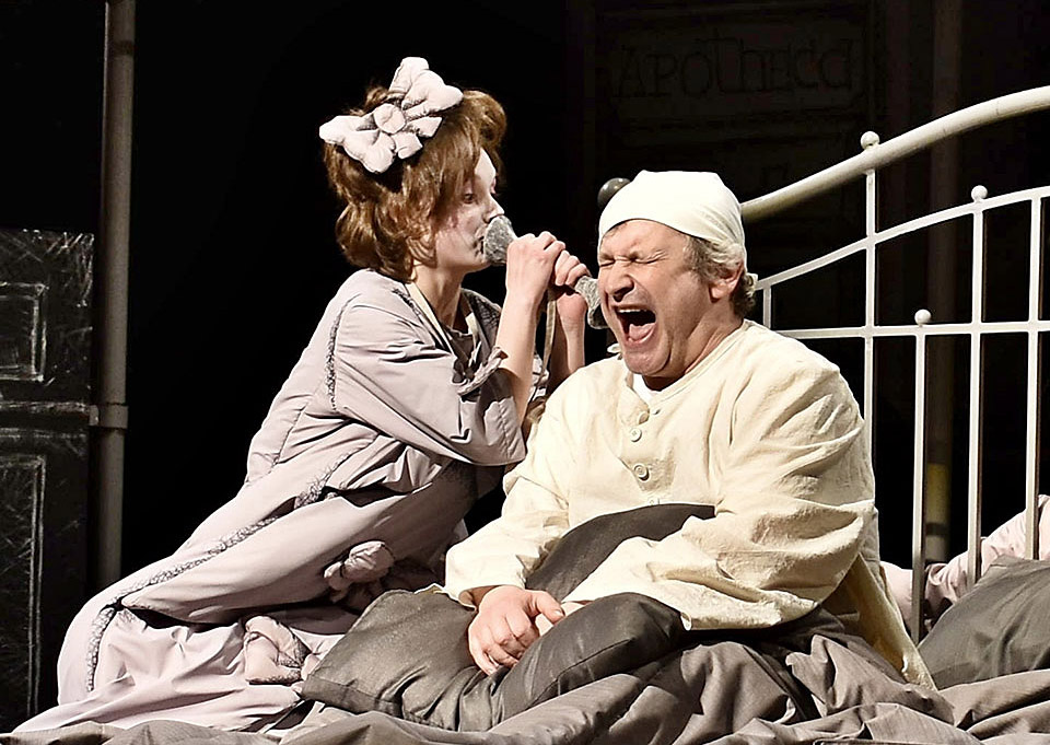 "Уявний хворий" - класична комедія французького драматурга Жака Батіста Мольєра - в режисерській оправі Дмітрієвої сприймається ще й як історія про щире кохання немолодого чоловіка. Її вистава ніби натякає, що ніхто з нас не зможе жити без любові. І якими тільки засобами не користується людина (особливо якщо це чоловік перехідного віку!), аби привернути до себе увагу рідних, позбутися своїх фобій.