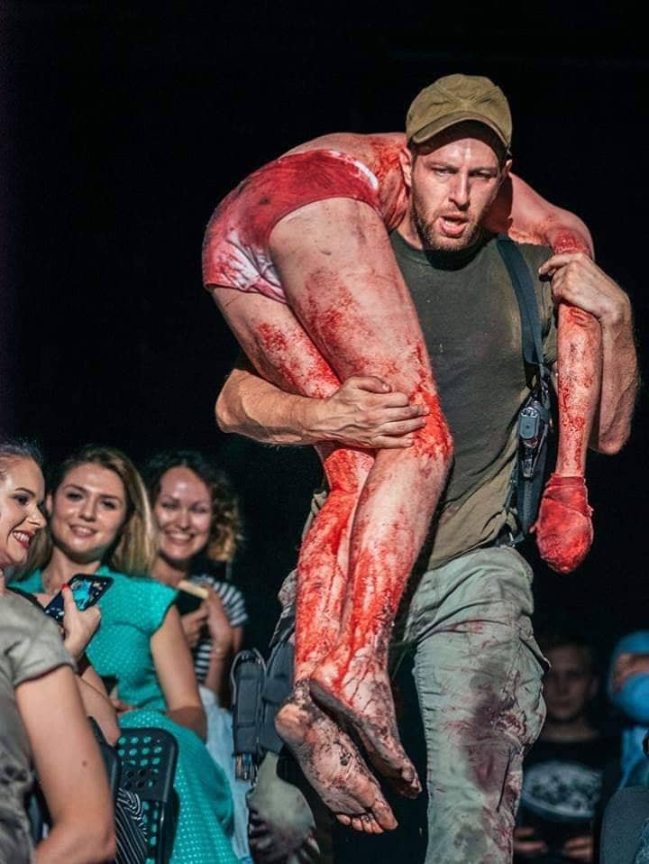 В'ячеслав Довженко ("Дівчинка з ведмедиком", Театр на Подолі). Можливо, котрийсь інший актор після такої активної затребуваності в серіалах та після всенародного успіху в "Кіборгах" і лічив би собі зелені банкноти після своїх знімальних змін. Але не цей! Невідомо, як він взагалі знаходить час для серйозних репетицій у рідному театрі, якому віддається максимально. Каюся (бо грішний), але Іполит, зіграний Довженком в інсценізації роману В.Домонтовича, навіть для мене виявився творчою несподіванкою - фактура, харизма, акторська здатність до сценічної подорожі з якихось печер античного минулого аж до примарного майбуття, яке й перетворює героя Довженка чи то в янгола, чи то в чорта.