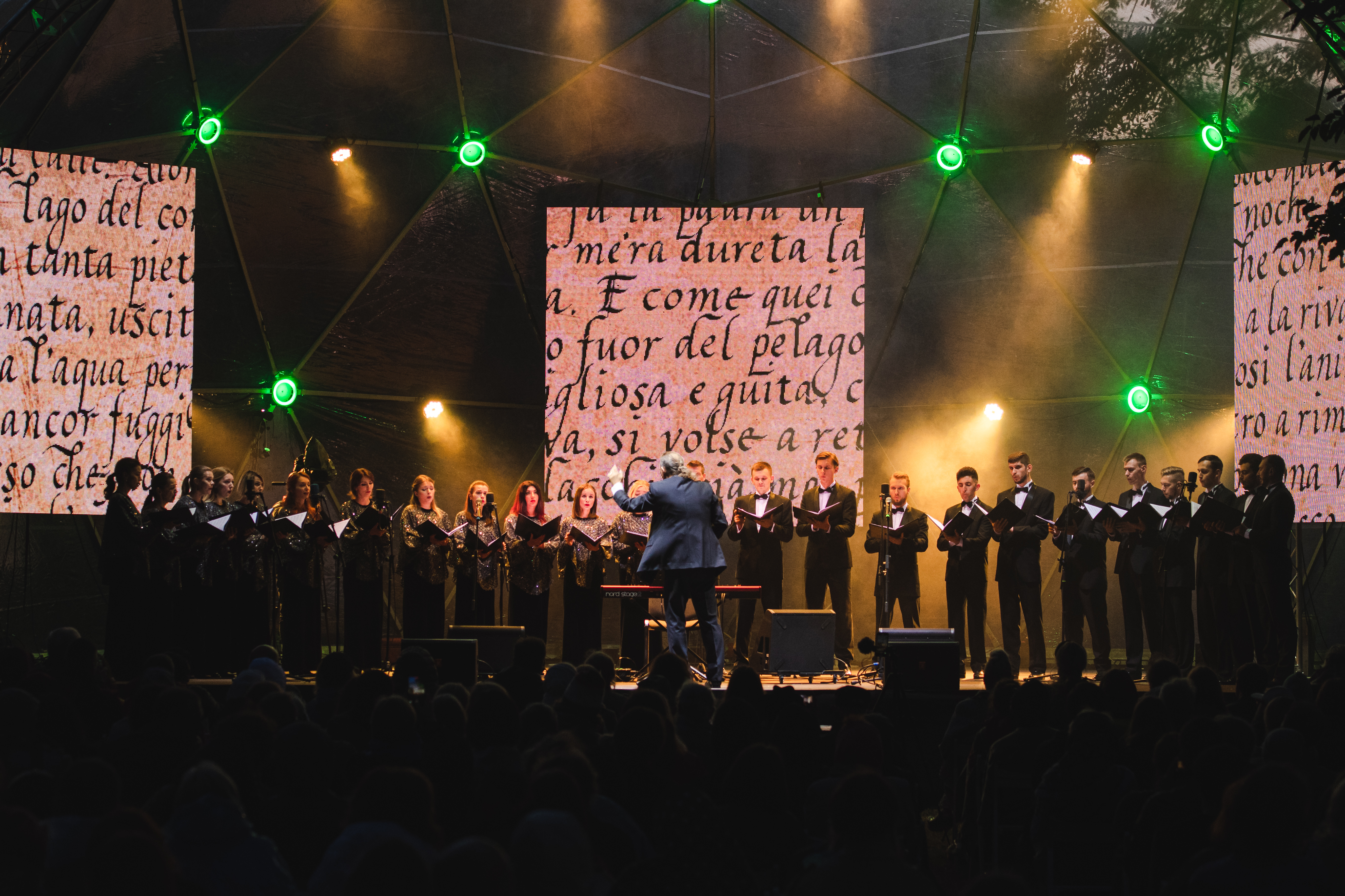 Тимчасом в іншому куточку центру Оксфорда збираються меломани. Один із них у футболці з написом «Проти Путіна», надітій під піджак, дістає український прапор і демонструє його оточенню. Він із родичами проїхав три години авто, аби потрапити на виступ Камерного хору «Київ». Чоловік чіпляє на лацкан синьо-жовту стрічку й розповідає українською з відчутним британським акцентом, що довго чекав цього виступу. Пана оточують зацікавлені місцеві, і він їм уже чудовою англійською розказує про виступ, який ось-ось має розпочатись. У церкві St. Michael/North Gate Church завершилася служба Божа і вже все готове до виступу. За півгодини на лавках храму — немає вільних місць. Пастор виносить зі сховку додаткові стільці. У програмі Камерного хору «Київ» звучать мелодії живого українського класика Валентина Сильвестрова.