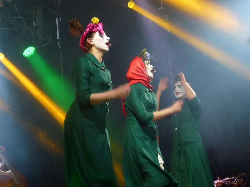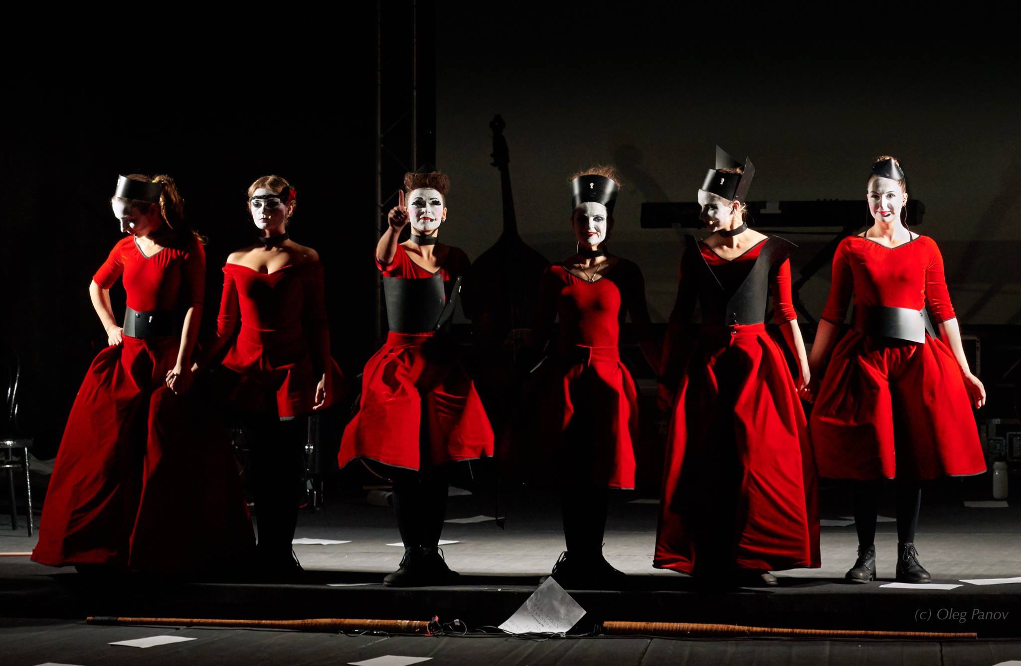Наталка Галаневич: - Наш творчий процес прекрасний ( Наталя бере мікрофон і починає імпровізувати номер. - Авт.). По-різному твориться наша творчість. Різні ідеї бродять: хтось каже, що нині ця ідея не йде. Буває, хтось щось зіграв або просто бринькнув… Як "Дружба" створилася - хтось просто написав текст. Буває, ідея приходить ззовні: приїжджає на Майдан французький режисер Люсі Берилович і каже нам - мовляв, розуміє, що хоче з нами робити "Антігону". "Мені треба, щоб ви були хором". Ми всі разом актуалізуємося і створюємо музику. Буває ідея зовсім інша: Таня розуміє, що вона не може жити без вірша Буковскі "Freedom". Вона бере поезію, і ми всі разом робимо вже музичне аранжування. Чи ідея Ані - "хочу цю Вегу", і ми робимо кавер на пісню Марії Веги, так народилася "Інститутка". Мені ж дуже подобається поезія Семенка, і я кажу: зробимо це. Ніна прийшла, почала грати на контрабасі, і я зрозуміла - поезія сюди лягає. Тобто ідеї приходять з різних куточків, і ми всі спершу обговорюємо, а Влад як великий режисер і композитор складає це все в драматичну канву, і, попри те, що всі наші ідеї надзвичайно різні, ми примудряємося зробити з них одну виставу. Та це великий шлях. І ще - ми не зупиняємося з тими штуками, що вже є, ми їх змінюємо.