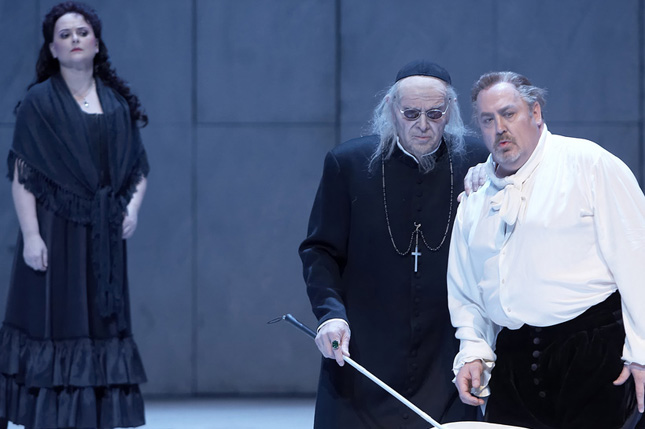 Тут і гостра лінія інтриг Великого інквізитора, у ролі якого прекрасно виглядав величезного росту уродженець Ісландії, зрілий бас Крістінн Зігмундссон. І чистий образ простого ченця-утішника, який у містичному фіналі перетворюється на покійного короля Карла V, діда спадкоємця іспанської корони. Немов якими чарами він спускається з небес і забирає приречених на загибель закоханих - Карлоса і Єлизавету - у ліпші світи (виразно-гнучкий бас чилійця Бруно Варгаса).