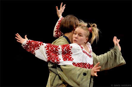 Заньківчани показали дві постановки. Не традиційні багатофігурні костюмні полотна, а спектаклі з камерним ухилом. "Божевільна" (про нещасну дружину Івана Франка Ольгу Хоружинську) - моно-історія, розіграна Олександрою Лютою. Переважно на високих регістрах, на форте, на білому звуці. Акторка обдарована, захоплена. Але режисерські лещата (Алла Бабенко), які передбачають відкриту екстрему, не залишають поля для маневру - для сценічного парадоксу, скажемо так. Коли, граючи екзальтовану і божевільну, акторка мала б проявити і розум її, і тихий сум безумної. Власне, за Станіславським: граючи лихого, шукай, де він добрий.
