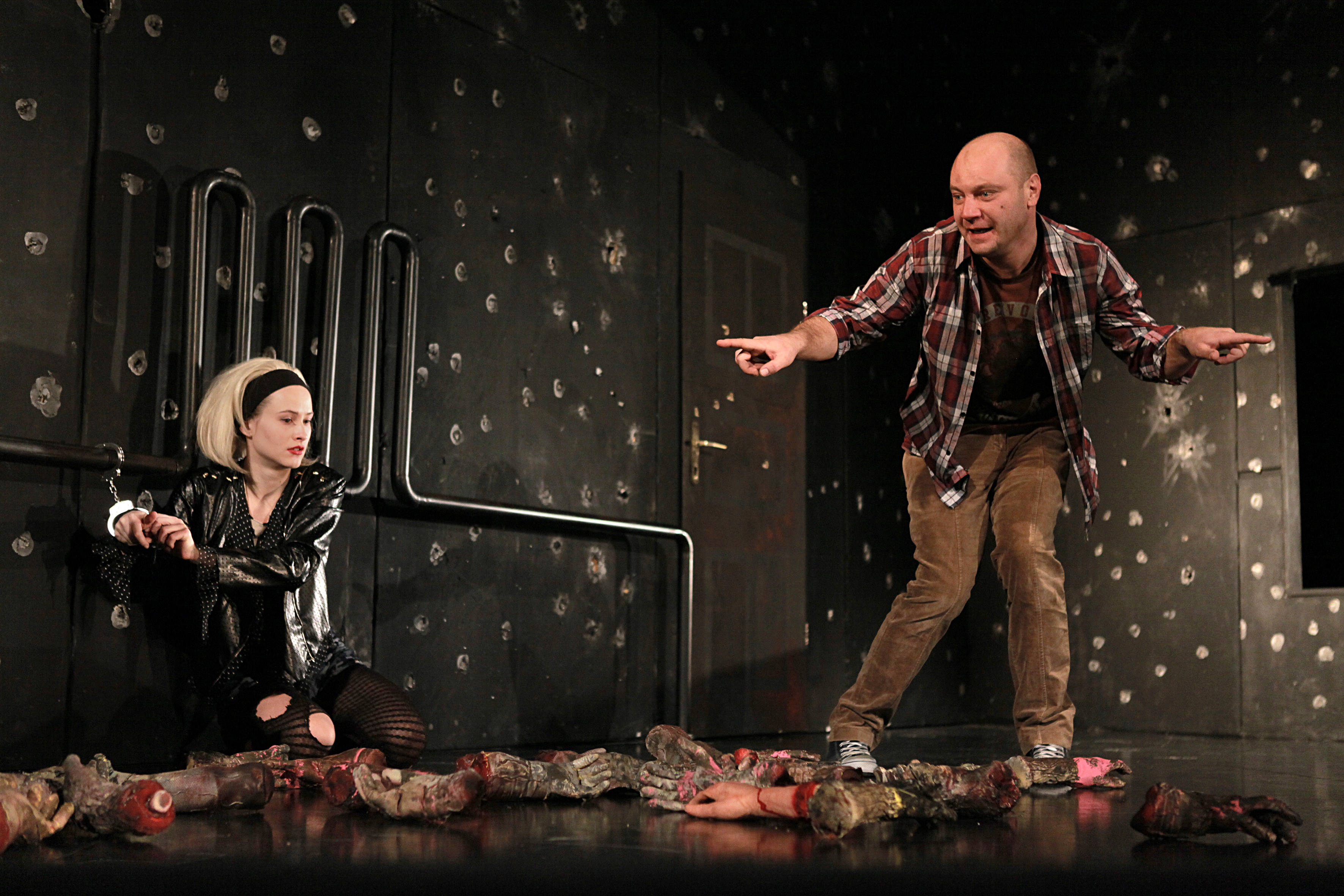 У молодих акторів є азарт, пробивається енергетика. Місцями бракує майстерності - тримати зал і поглиблювати природу чорної трагікомедії самим фактом своєї присутності (у ролі прикутих, приречених, смішних).