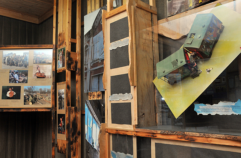 - Люди мистецтва всіма способами й можливостями повинні протистояти агресії, - каже DT.UA Андрій РОМАНЧЕНКО. - Нинішня відверта агресія передбачає відкриті руйнування. Але діячі культури просто народжені для творення. Тому вони й зобов'язані відгукуватися на поточні події, на цей біль. На мій погляд, безумовно, є щось спільне між тією далекою Другою світовою й Вітчизняною, як її називали, війною, - і війною теперішньою, теж вітчизняною. Коли я формував нинішню експозицію, мені було важливо донести до відвідувача, що сьогодні ми й живемо в цих складних драматичних подіях. Не вчора, а саме сьогодні. Тому ви можете помітити певний момент мерехтіння, нашарування подієвих рядів, які змінюються щохвилини. Тобто наша експозиція - це кадр за кадром... Дня нинішнього... У роботі використовувалися драпірування, дошки, неоціненний фотоматеріал. На підлозі - імітація розрухи, з якої ніби виростають ці стенди. Думаю, експозиція постійно поповнюватиметься новими матеріалами. Мені хотілося передбачити додаткові площини, які згодом можна буде наповнити новими експонатами, свідченнями. Наприклад, у контексті нинішньої трагедії не можна було оминути такого кінорежисера, як Олег Сенцов. І інтерактивність нашої експозиції дозволяє включити цю особистість у нинішній простір.