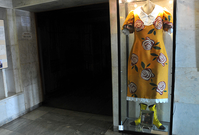 - Ви вже, мабуть, звернули увагу, що в цій музейній експозиції є справжній сценічний костюм тьоті Моті - героїні п'єси Миколи Куліша і нашого донецького спектаклю "Тьотя Мотя приїхала". Рік тому я робив тут-таки, в цьому музеї, свою персональну виставку. І попросив тоді в театрі деякі костюми. Минув час. І виявилося, що віддавати ці костюми тепер уже нікому...