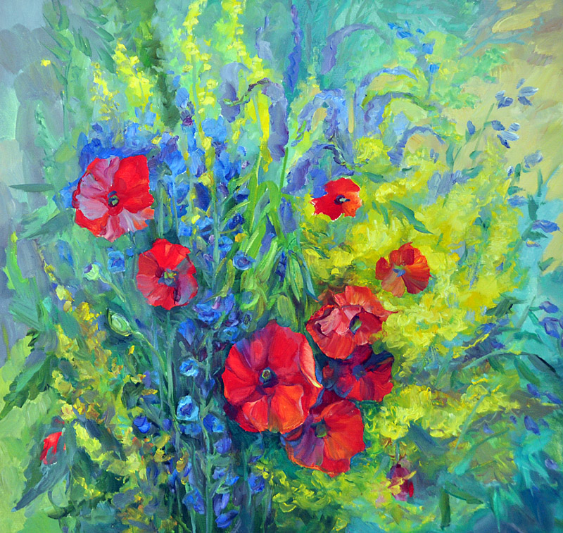 - На вашій персональній виставці під назвою "Зачарована красою" помітно багато квітів (на живописних роботах). Це ваше усвідомлене прагнення - трохи "розцвітити" наше життя, де останнім часом так багато тривог і темного кольору?