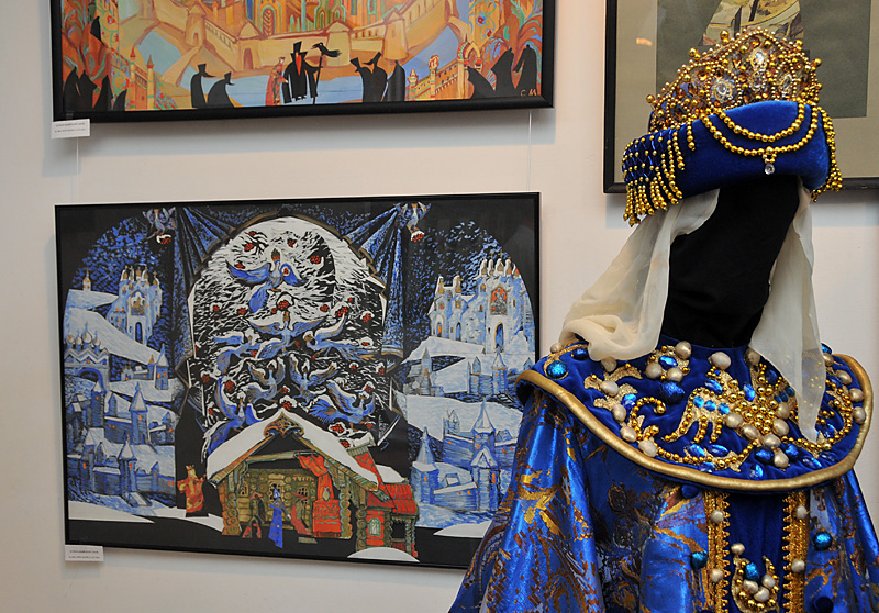 Далі - "Казка про царя Салтана", досить важкий спектакль. Саме не стало мами... І я довго не могла працювати. А це ж дитяча яскрава казка! Але через десь два місяці поклала на папір два мазки - червоний та яскраво-зелений, - і робота пішла.