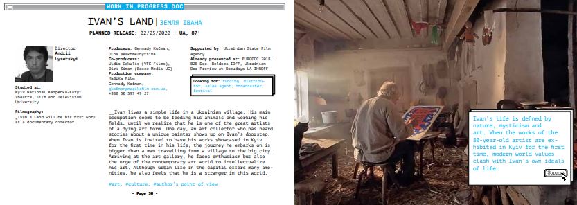 "Ми зразу зрозуміли, що хочемо робити курируваний каталог, вибирати для нього проєкти, стосовно яких упевнені, що є сенс пропонувати їх подивитися за межами України", - розповідає в розмові з DT.UA програмний директор фестивалю Docudays UA Вікторія Лещенко. Саме з такою ідеєю п'ять років тому засновник фестивалю Геннадій Кофман прийшов у Держкіно і зміг переконати його керівництво та Громадську раду (благо, Революція Гідності породила в країні справжній бум документалістики) у тому, що українській державі необхідно підтримувати документальне кіно взагалі й каталог, зокрема. У багатьох країнах такі каталоги випускають державні інституції, у нас же держава делегувала фестивалю право відбирати для міжнародної аудиторії найкращі українські фільми, і Docudays UA, безперечно, чудово впорюється з цим завданням, як і загалом із промоцією українського кіно за кордоном. За фінансової підтримки Держкіно, певна річ.