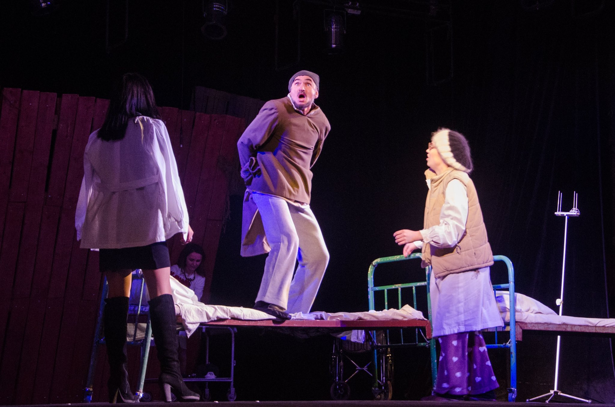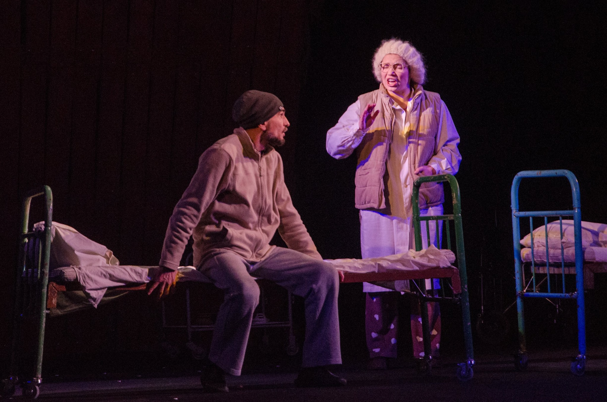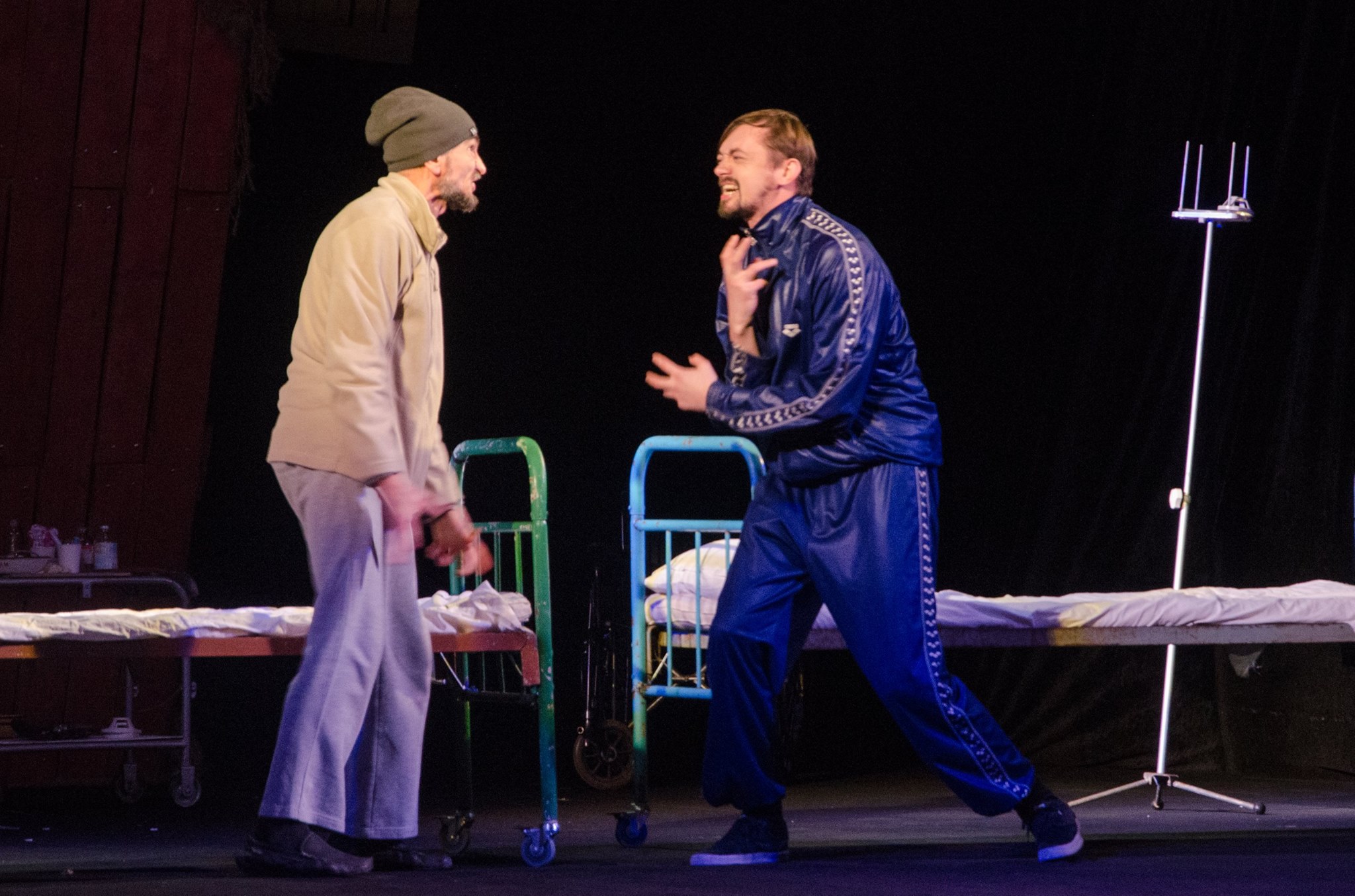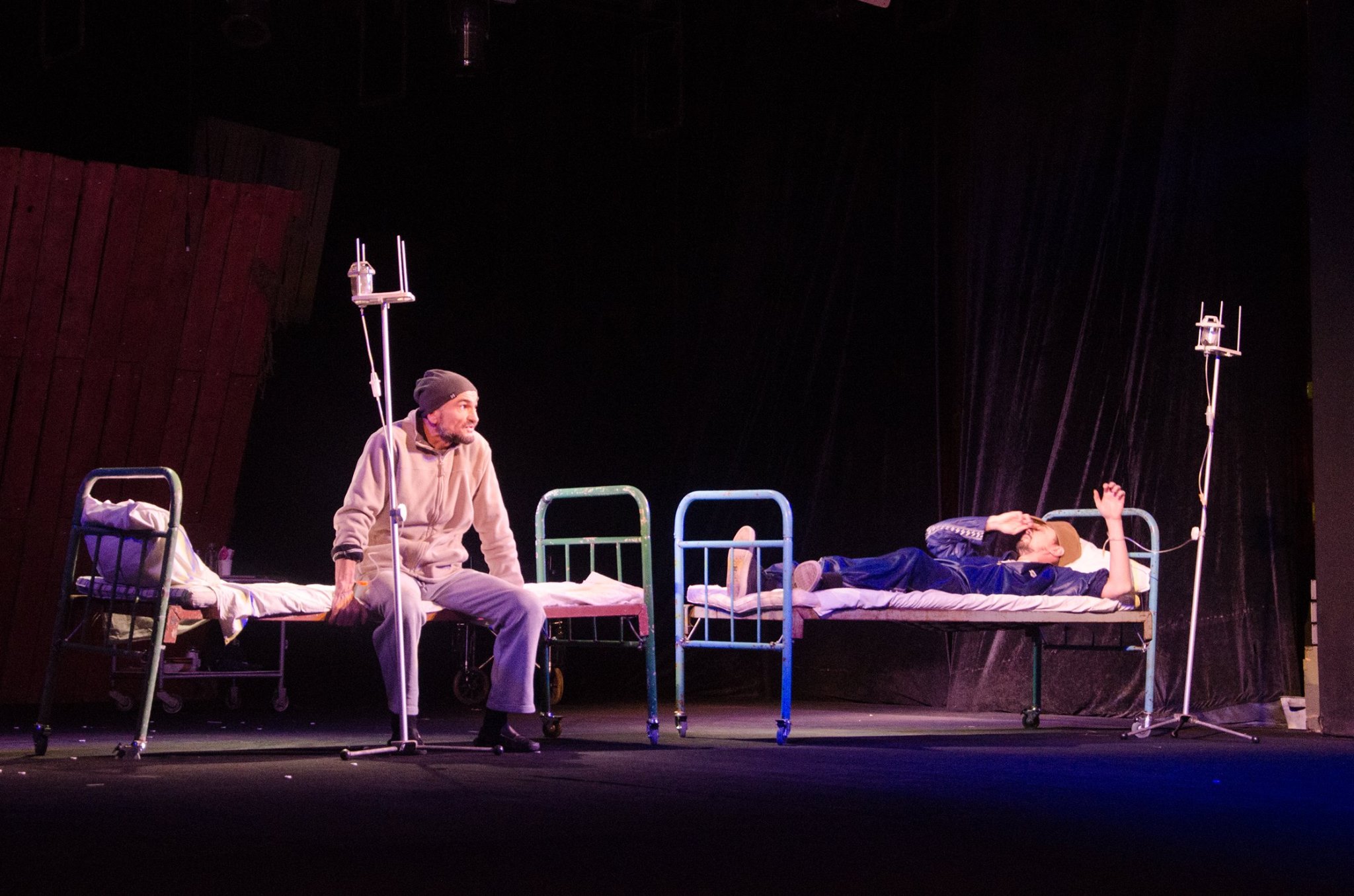 Сам спектакль, який починається заклично тривожно, ніби виштовхуючи з пітьми Історії силуети нещасних бійців Другої світової, поступово гасне, втрачає внутрішню енергію. Серцевина сценічного дискурсу, пов'язана з ними (двома), мимоволі роз'їдається додатковим "вапном". На перший план виходить та ж таки "справа лікарів". Бо в драматурга у п'єсі присутні: стерво-корупціонер-лікар (Ірина Зозуля, 40-45 років), російськомовна медсестра Ольга (трохи за 50), хороша медсестра Ганя (їй 31, вона внучка Остапа). Тобто основними в палаті мимоволі виявляються інші мешканці. Місце ветеранів, як завжди, - і в житті, і на сцені - на крайці сюжету, на межі Історії. Тому що вони, на жаль, - бідні вічні маргінали.