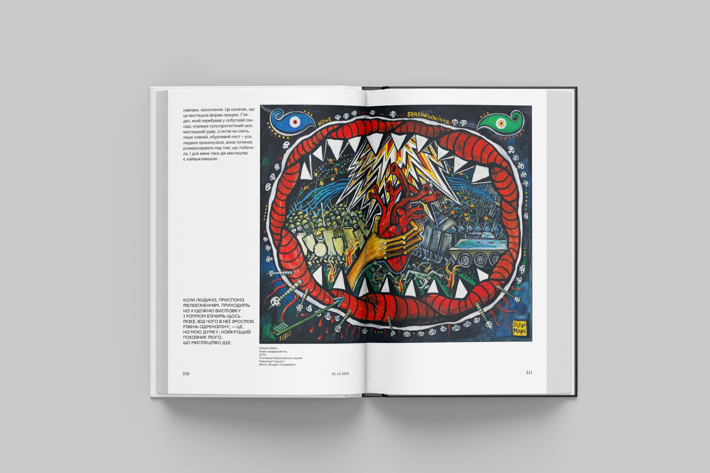 Мені особисто як одному з поціновувачів саме такого контенту особливо приємно зустріти під обкладинкою книжки пані Олесі багатьох сучасних українських митців, своїх давніх знайомих, котрі останніми роками були героями численних публікацій «Дзеркала тижня».