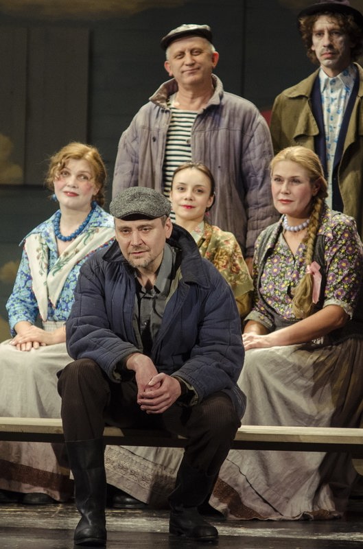 Віталій Линецький, Володимир Горянський, Леся Самаєва, Михайло Кукуюк, інші герої лівобережного театру наряджені в куфайки або трохи недоладну (часто не за розміром) сільську одіж. Ніби підморгуючи глядачеві, вони приговорюють із традиційним для російських лісів-рівнин йоканням-оканням. І, сидячи на сільській лавці, з головою занурившись у свої образи, готові переробити мішок насіння, лузаючи його невтомно, а потім спльовуючи лушпиння прямо в зал (щоб зруйнувати "четверту стіну").