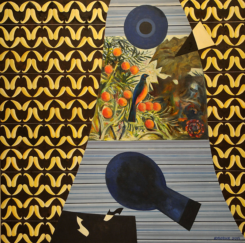 * "Письмена на небі". Це одна з моїх "інспірацій". Не можу сказати, що дуже захоплений каліграфією. Просто ціную кожну - і китайську, і японську, й ісламську. Це неймовірне мистецтво! Написав усі роботи швидко. Шість великих полотен написав узимку. А двадцять, невеликих за розміром, зробив раніше. Всі роботи виконані переважно олією.