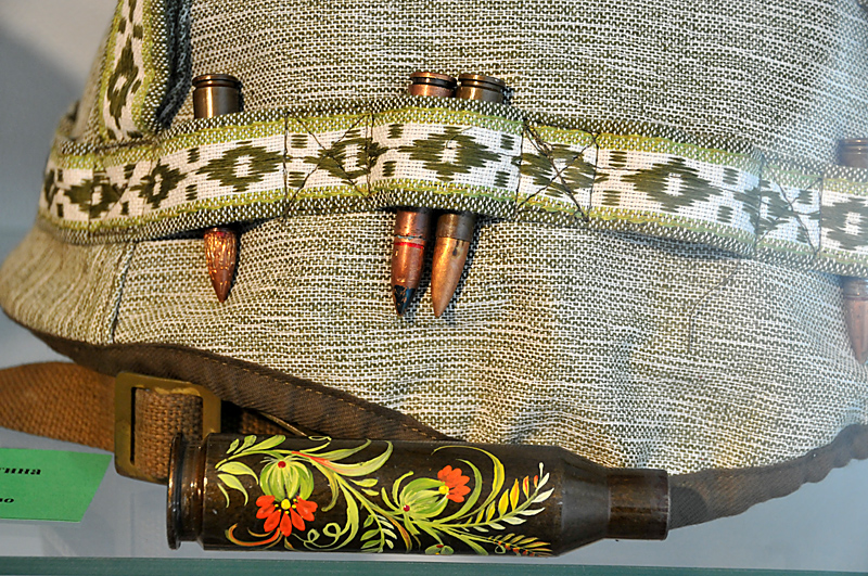 Сама виставка - як симбіоз війни й мистецтва. Нечасто побачиш петриківський розпис… на реактивній протитанковій гранаті "Муха" або вишивку на обмундируванні бійців. А ще - інкрустації з соломи, канонічна ікона на ящиках з-під патронів.