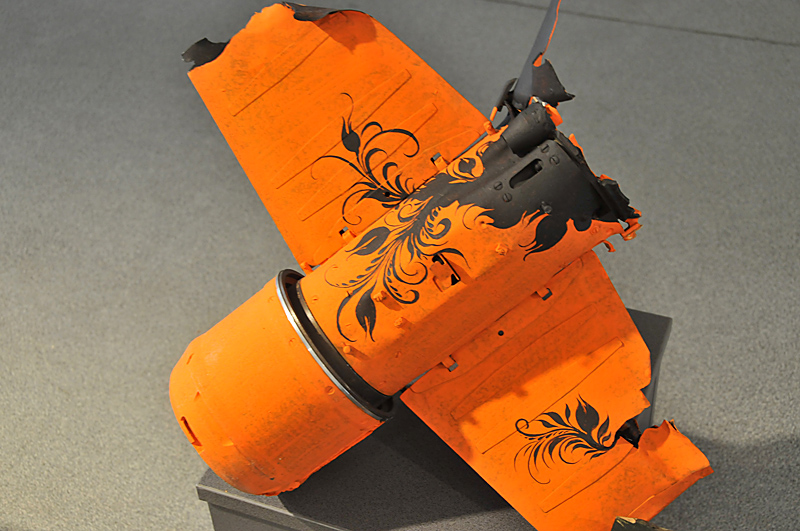 - А вже майстри, своєю чергою, надсилали мені свої твори. Самому було цікаво, як митці обіграли той або інший атрибут воєнних дій. Наприклад, майстриня петриківського розпису Наталія Жарко - одна з найкращих в Україні - талановито оформила ящики, осколки, гільзи.