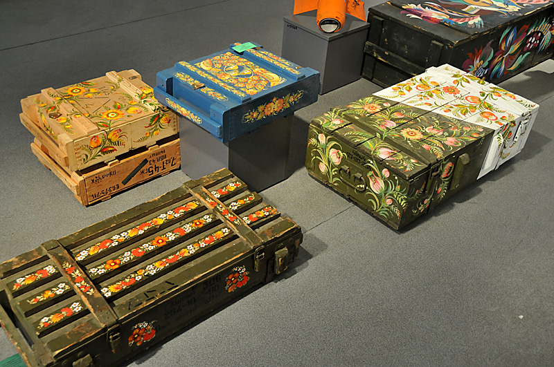 Важливо відзначити, що артефакти війни, хоч до них і доторкнулися руки майстрів, не стали гламурними. Наприклад, майже всі ящики не перефарбовані, на них залишилися маркування, вади.