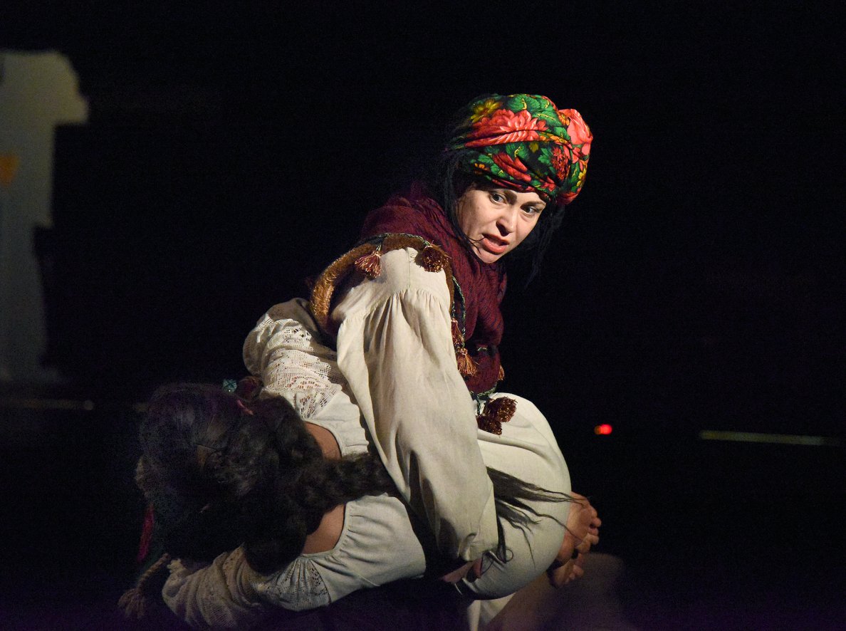 Абсолютно блискуча пара на інфернальному гоголівському балу - Ілля Хомич Кочкарьов (Яків Кучеревський) та сама сваха. Пекельна парочка, два деміурги. У кожного з них своя місія - женити чи погубити? Чи те й інше одночасно. Кочкарьов, блискуче й осмислено зіграний Кучеревським, - трохи кульгавий Воланд, демонічний спостерігач за праукраїнськими обрядами й дивовижами. Враження, що в далекому минулому в нього з цією свахою були якісь спільні таємниці. І ось, зійшовшись в останньому двобої сваволь у випаленому й спопелілому лісі життя, кожен і грає свою останню містичну партію, заручницею в якій є бідна Агафія, вона ж сліпа Сольвейг, на що недвозначно вказує режисер, обрамляючи свою виставу знаменитою "Піснею" Гріга.