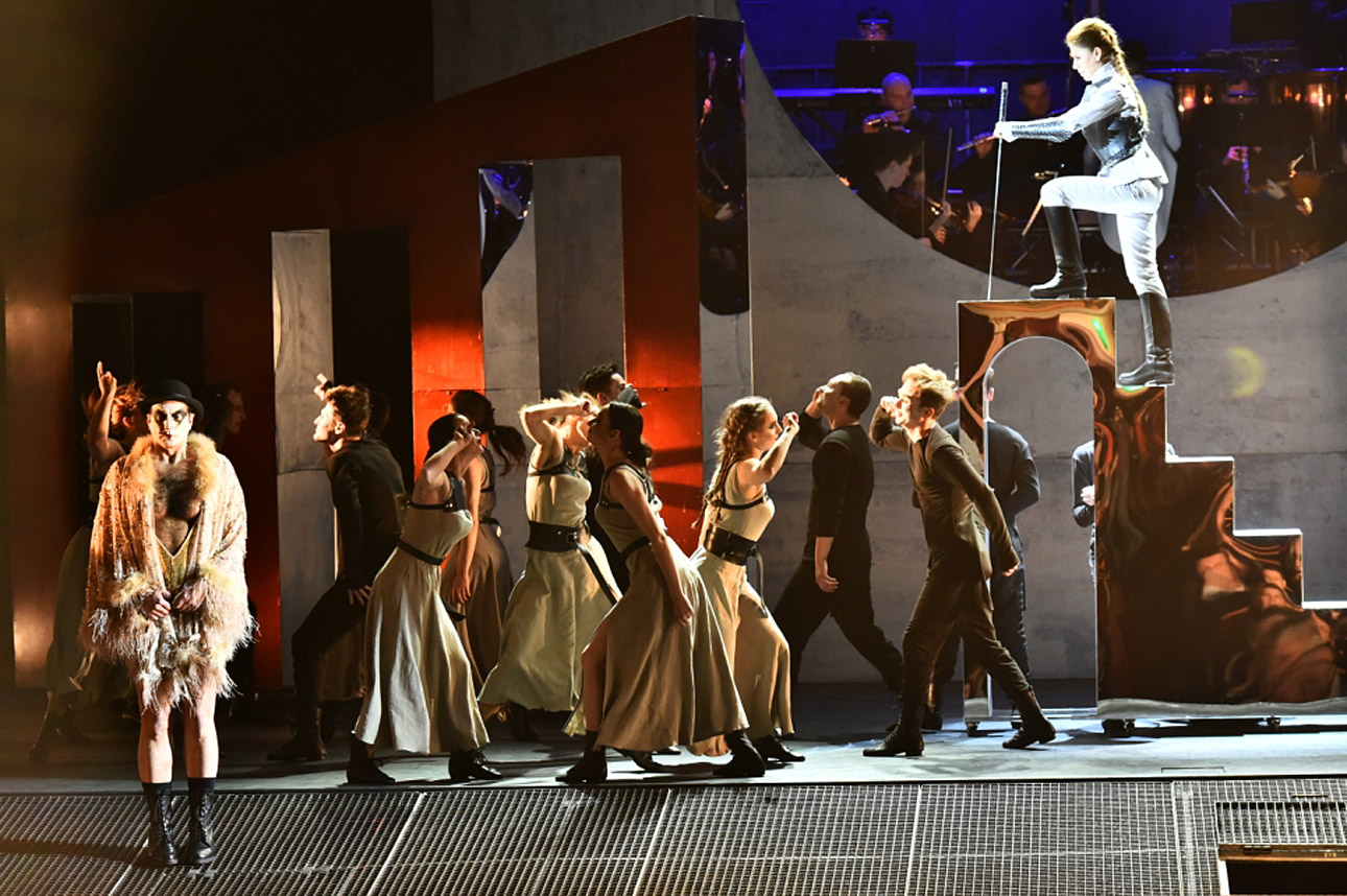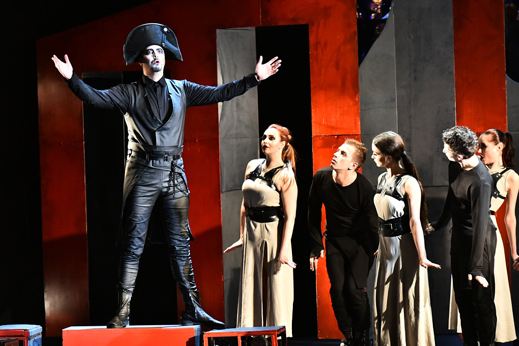 Режисер і художник доречно розміщують оркестр над сценою, мало не в піднебессі, в колі Сонця, дозволяючи музикантам споглядати за тим, що на сцені. Водночас дзеркальні конструкції ритмічно маневрують, створюючи грайливу ілюзію площі, королівських покоїв і всього того, що Рибчинський прописав.