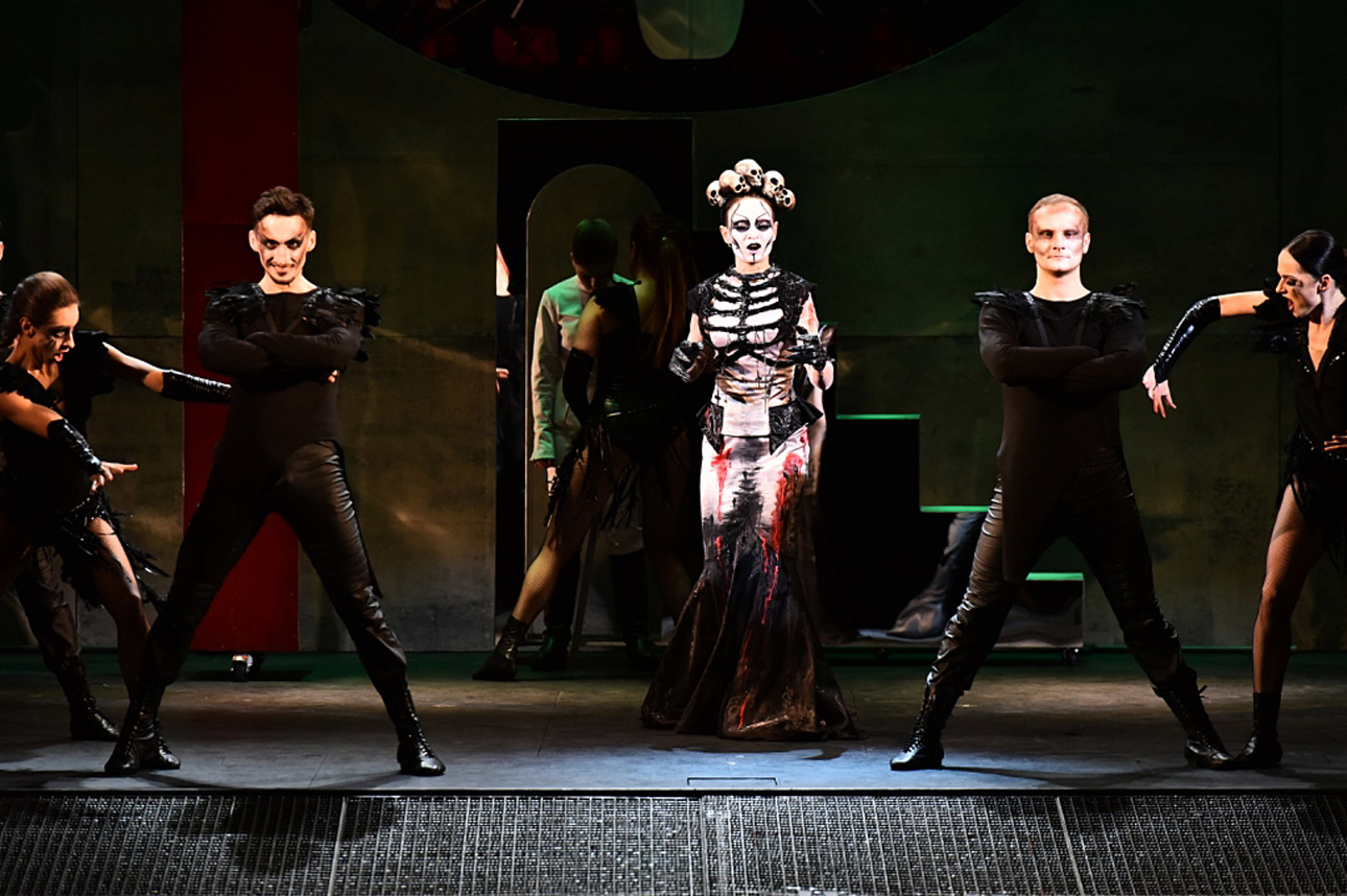 Такий контрапункт, шоу-бізнесова боротьба за життя і владу в різних локаціях - іронічне й доречне рішення, яке дає змогу подати великим планом (над ямою) головні обличчя й головні теми вистави.