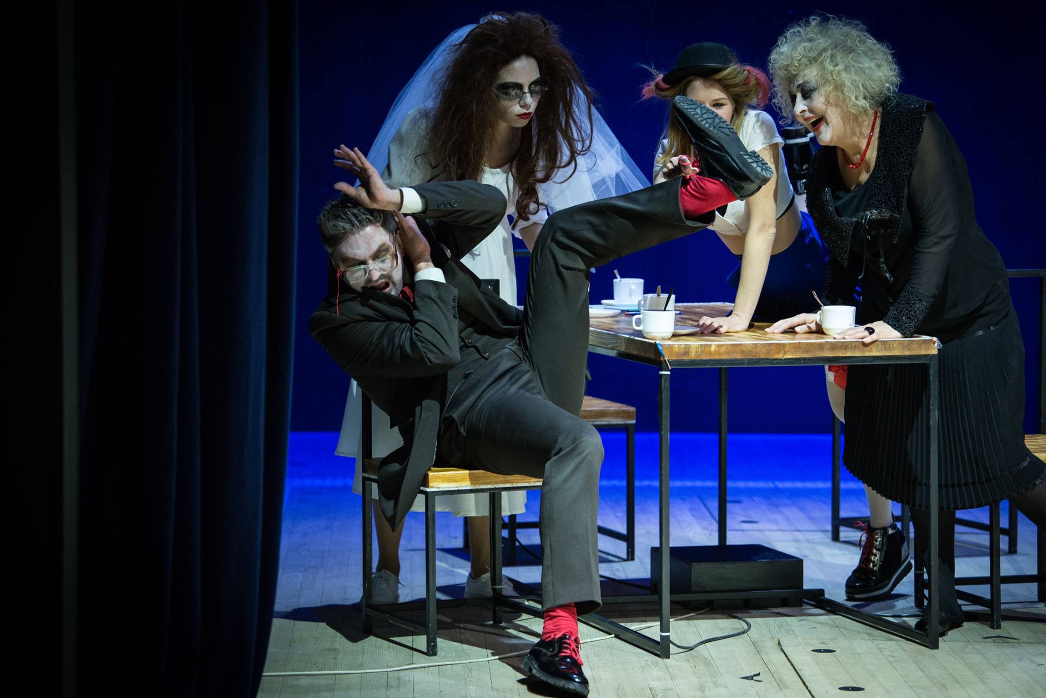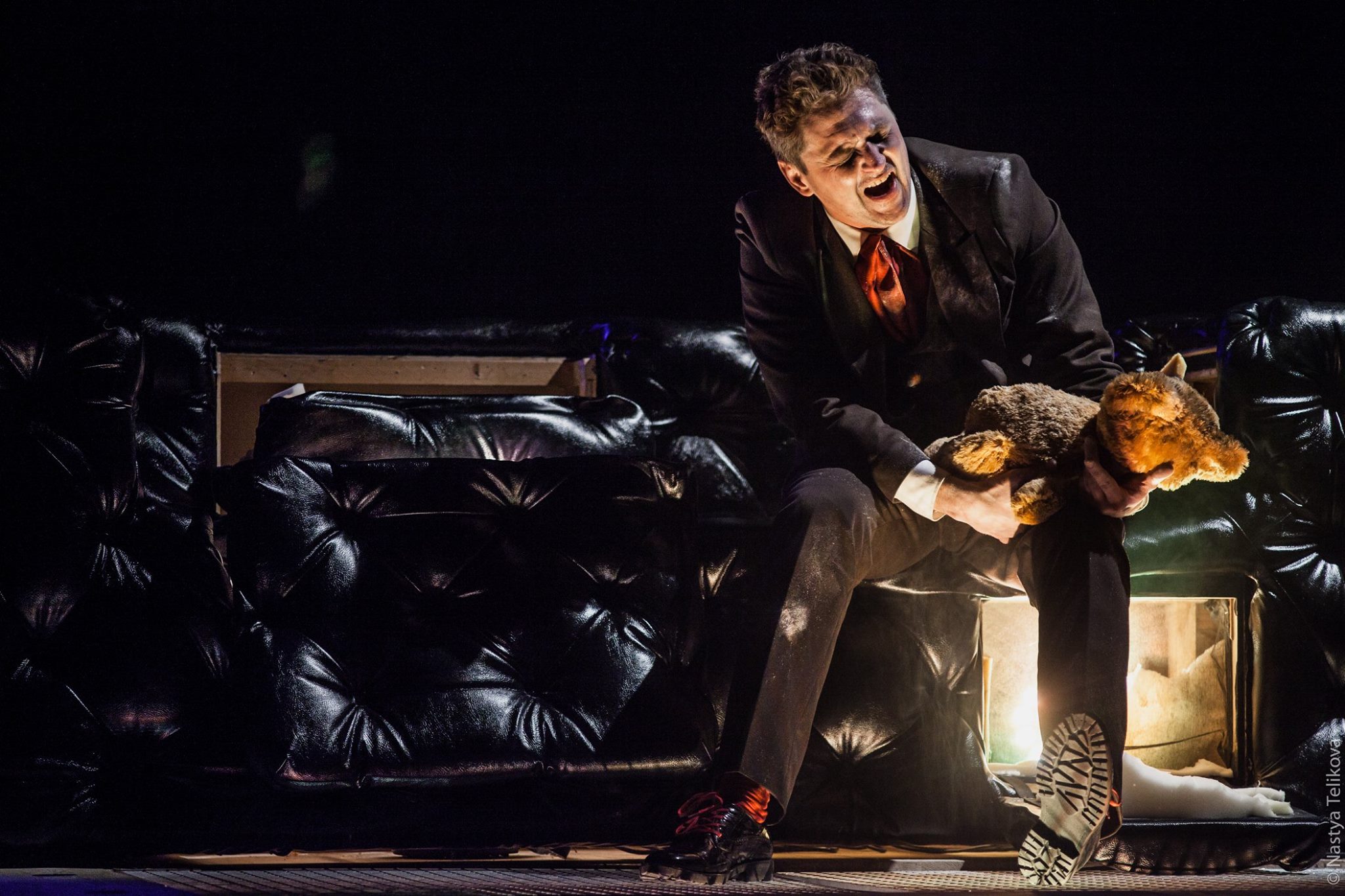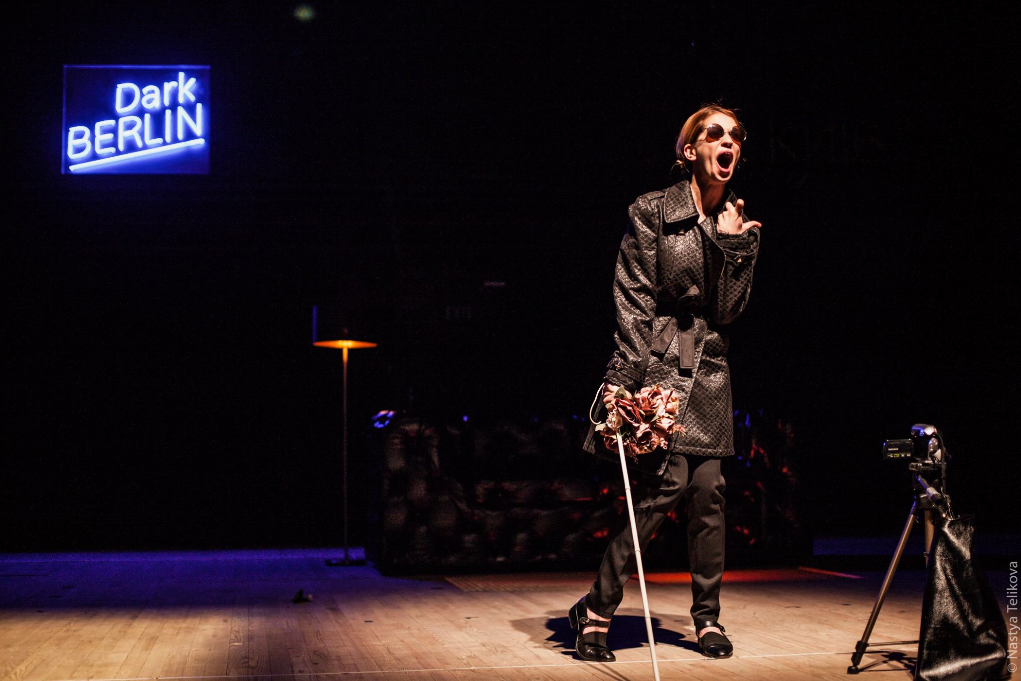 Фронтальні мізансцени з мікрофонами й елементами stand up comedy передбачають сувору ясність того, що відбувається. З читцями і знаками, різними часами та одним сюжетом про любов-химеру Іполита до дівчини Зіни, яка любила "ведмедика", а потім віддалася вчителеві, а потім - двірникові, а потім змилася в Берлін, а потім...